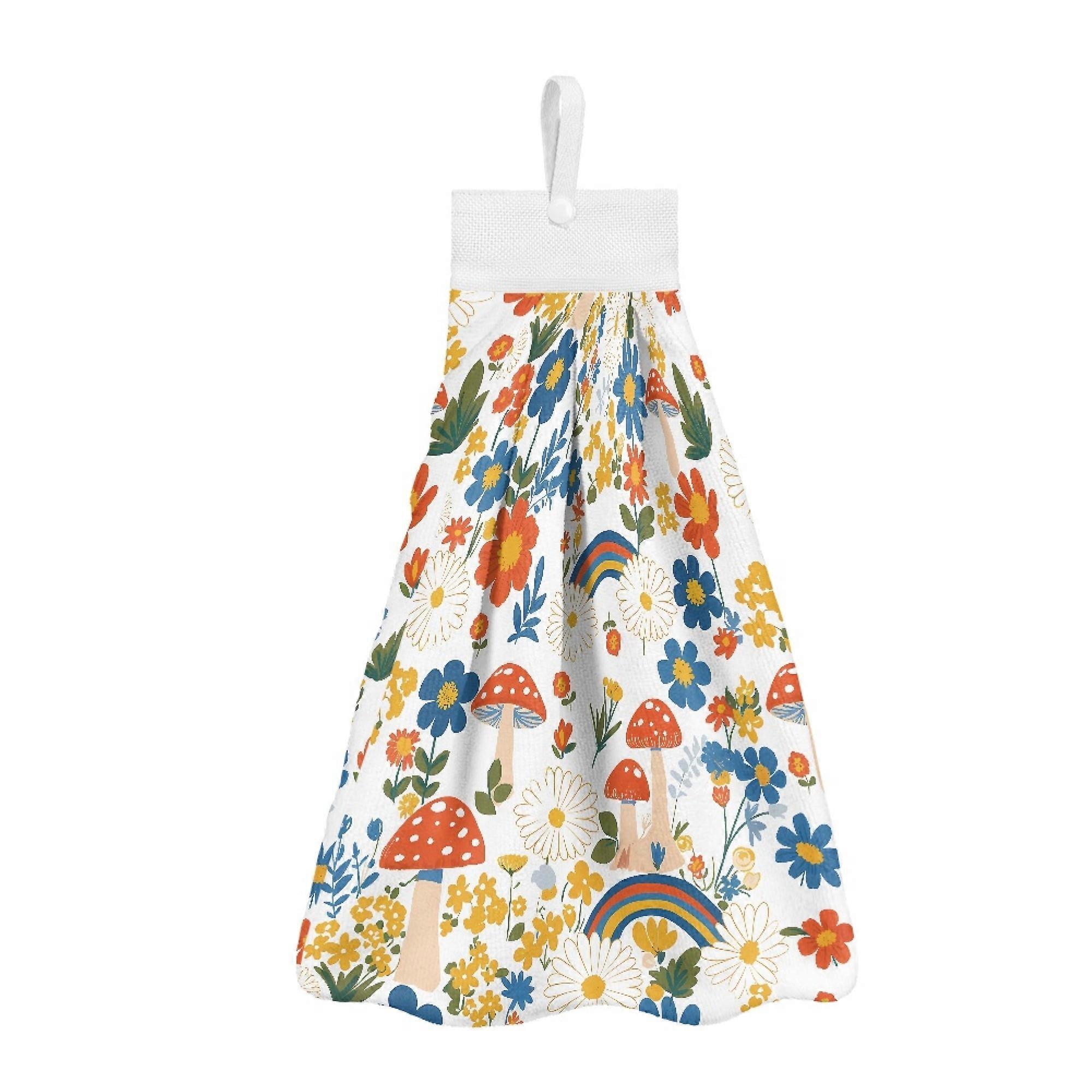 Rainbow Mushroom Hand Towels with Hanging Loops, Set of 3, Absorbent & Quick-Dry for Bathroom, Adults/Kids