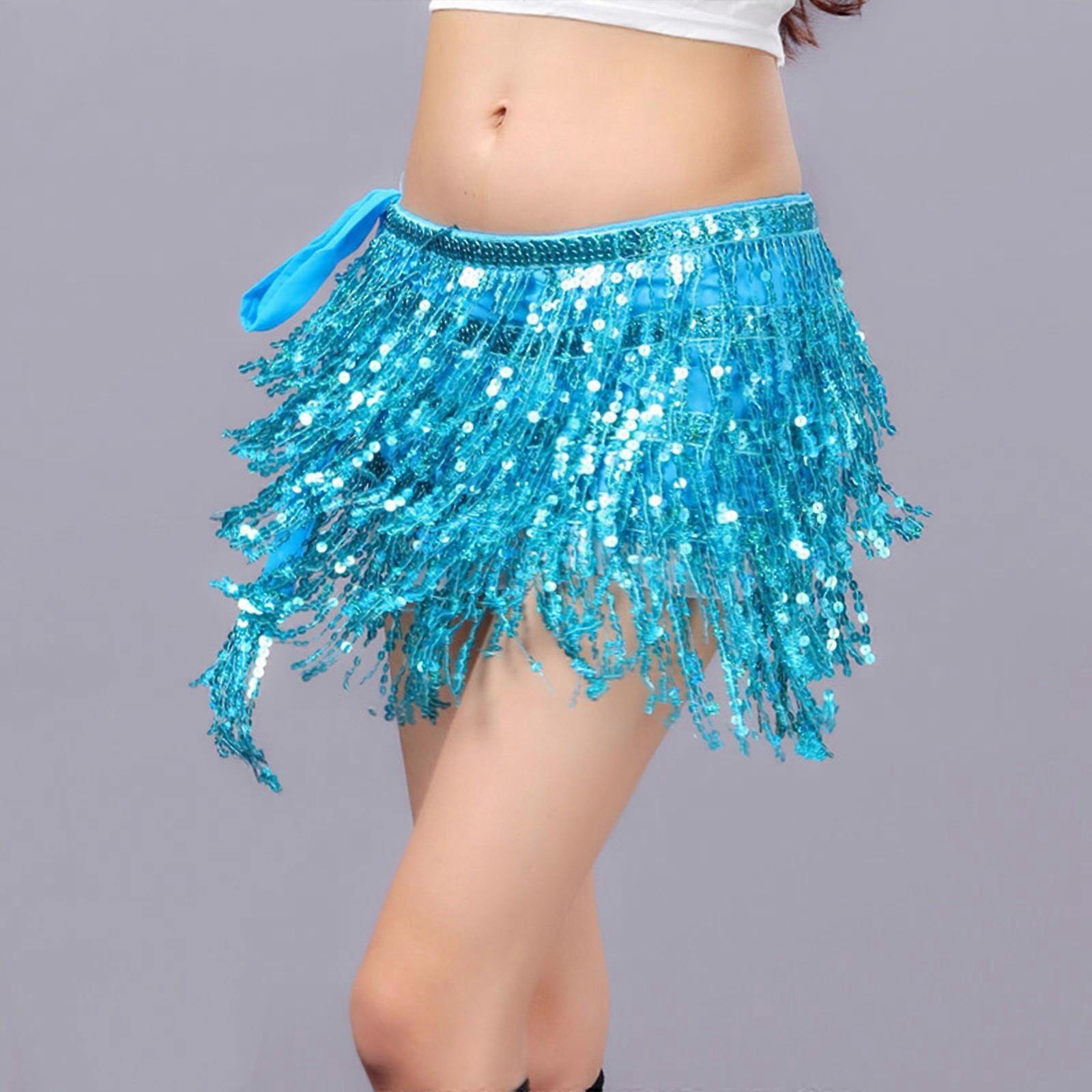 Women's Mini Sequin Fringe Skirt for Nightclub & Stage – Sparkly Blue Wrap Skirt, One Size, Compatible with Costume Fashion