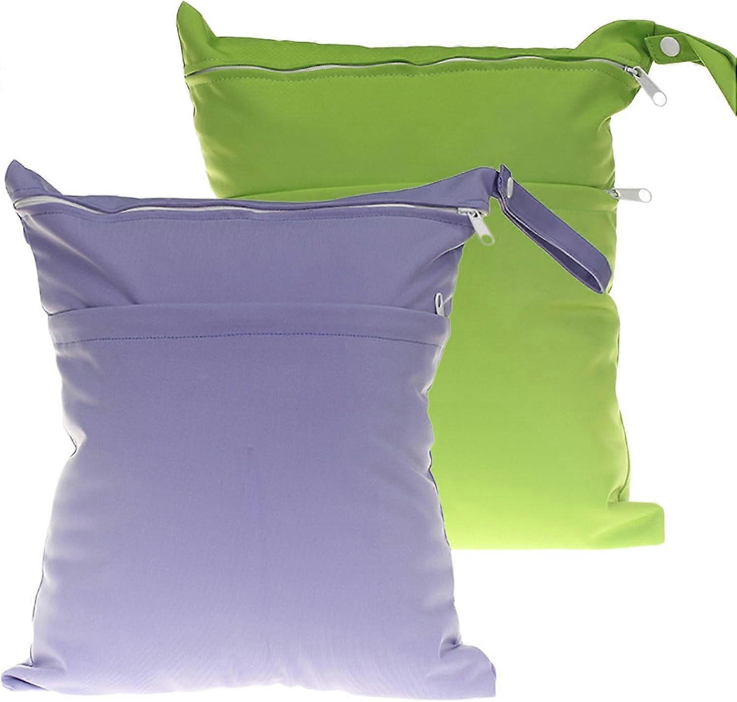 2 PCS Waterproof Wet Bags for Swimming, Gym, Beach – Reusable Washable Cloth Diaper Bags with Double Zipper Pockets (Purple+Green)