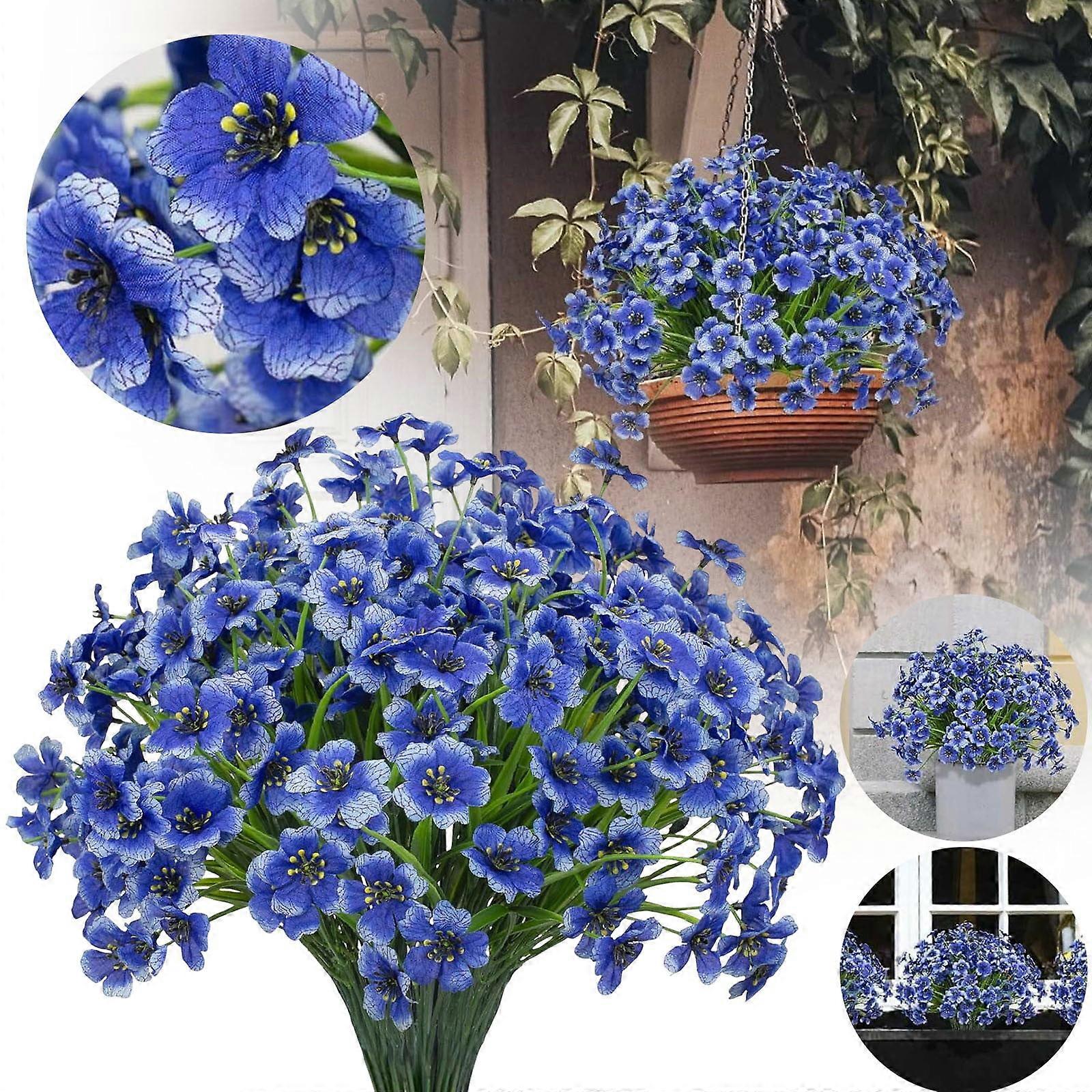 12PCS Artificial Flowers Blue UV Resistant Faux Roses With Soft Touch Latex Look Suitable For Outdoor Home Wedding Decor