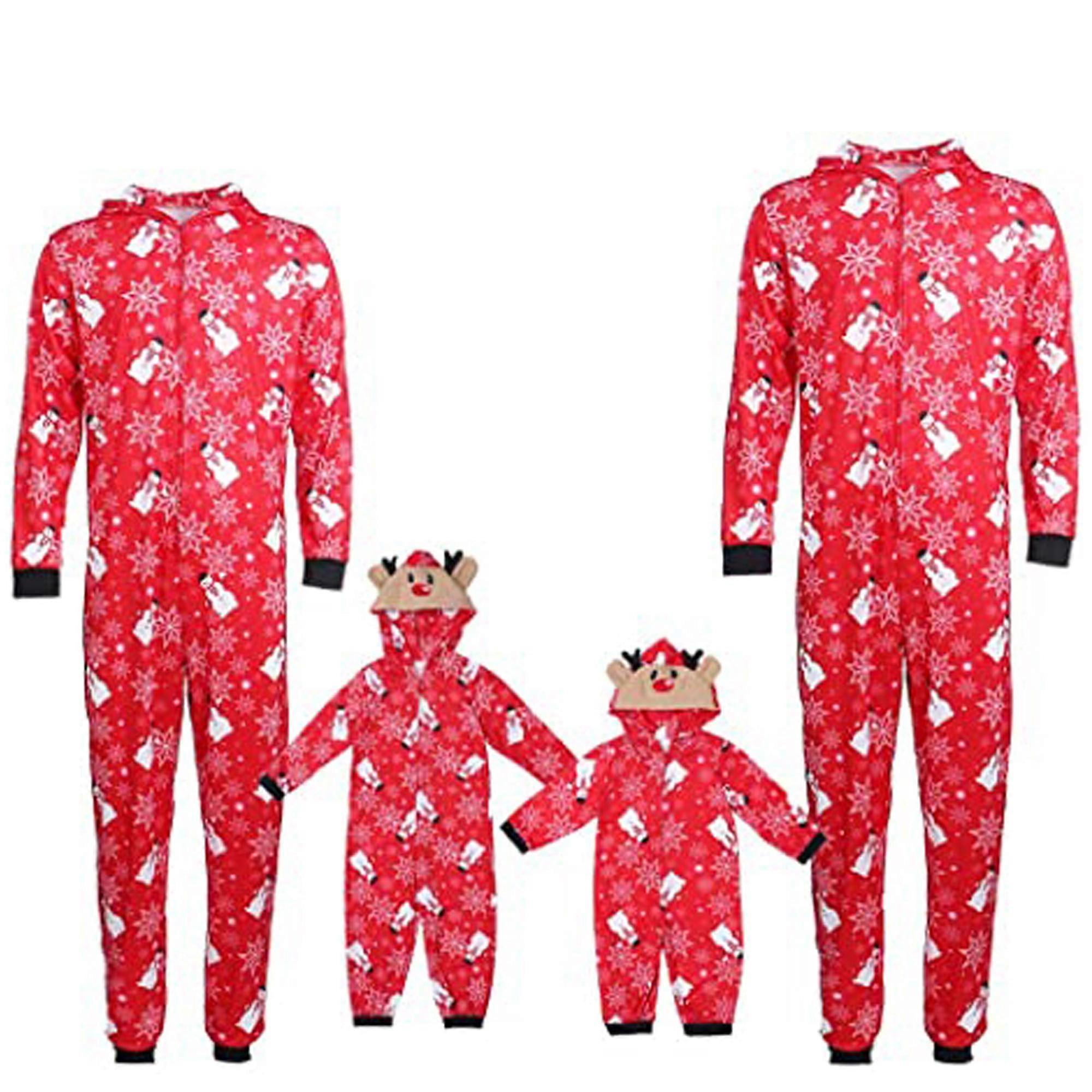 Christmas Family Matching Pajamas Set Snowman Print Long Sleeve Hooded Onesies Home Holiday Sleepwear Nightwear (Mom,M)