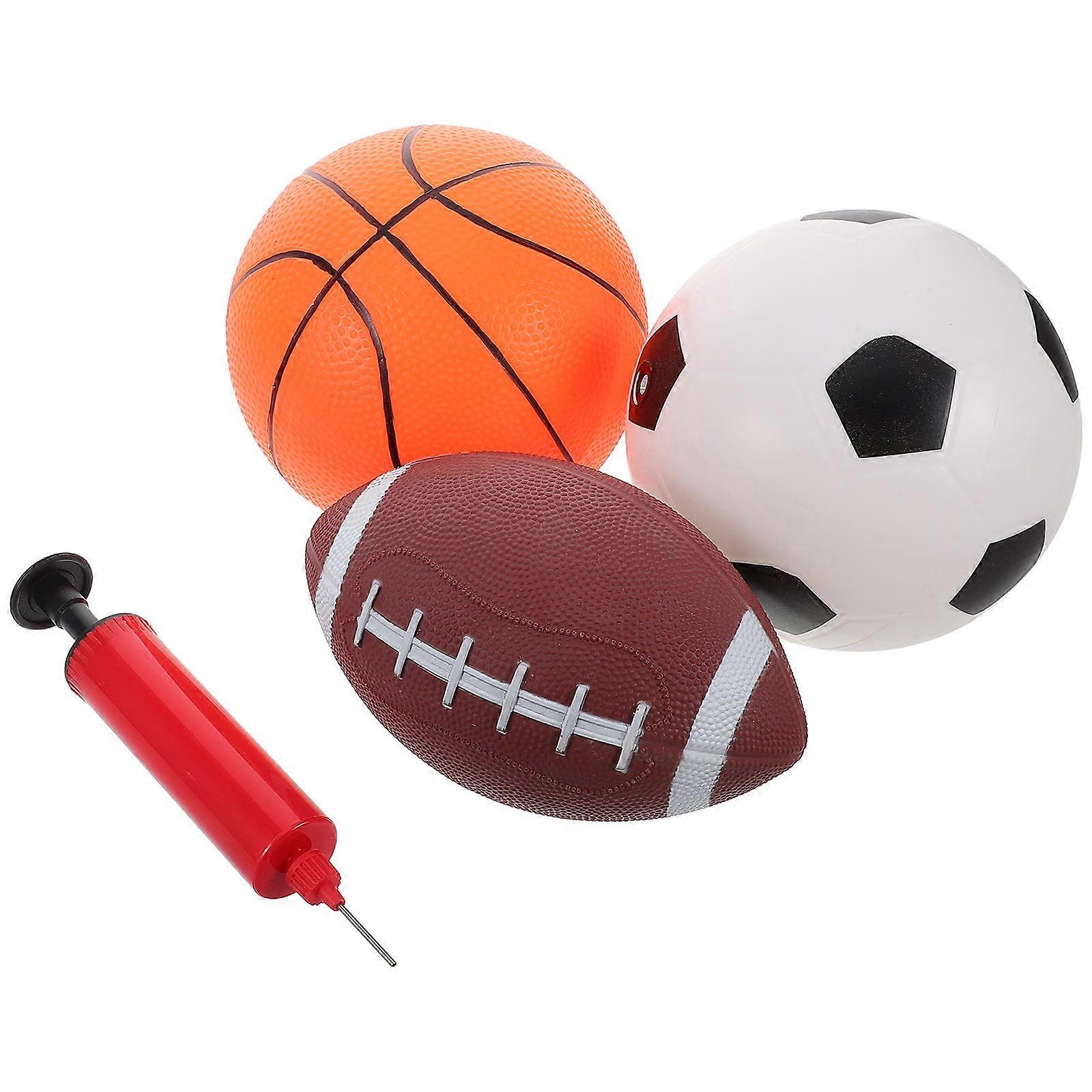 Ideal for both solo and group play, these toy balls can be used in various games and activities. Whether it's a game of catch, a mini basketball match, or simply bouncing around, these balls provide versatile entertainment. They are designed to withstand rough play, ensuring enjoyment for kids. Features -Color:Multi -Material:Plastic+Metal -Size:18.00X18.00X18.00cm/7.07X7.07X7.07in -Size:18.00X12.00X12.00cm/7.07X4.72X4.72in -Size:17.50X3.00X3.00cm/6.88X1.18X1.18in -Durable pvc: constructed from durable pvc material, these balls are designed for safe play. -Skill enhancement: great for improving children's motor skills and handeye coordination through play. -Parentchild interaction: encourages interactive play between parents and children, enhancing family bonds. -Exciting design: the bouncy basketball design adds excitement and challenge to playtime. -Inflation made easy: includes a pump for convenient and quick inflation, keeping the balls ready for use Package list: 1 x football toy 1 x basketball toy 1 rugby ball toy 1 x pump