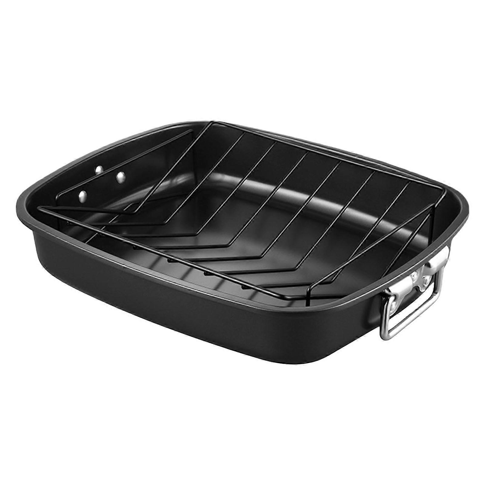 Professional 17Inch Turkey Roaster Pan Carbon Steel Roasting Pan With V-Shape Grill Large Capacity Baking Tray for Oven Multicolor