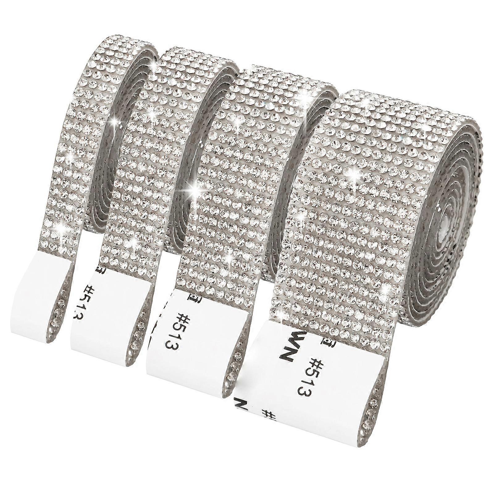 4 Rolls Sparkling Rhinestones Ribbons Adhesive Rhinestones Tapes For Art Craft Cake Candle Decoration Garment Making White