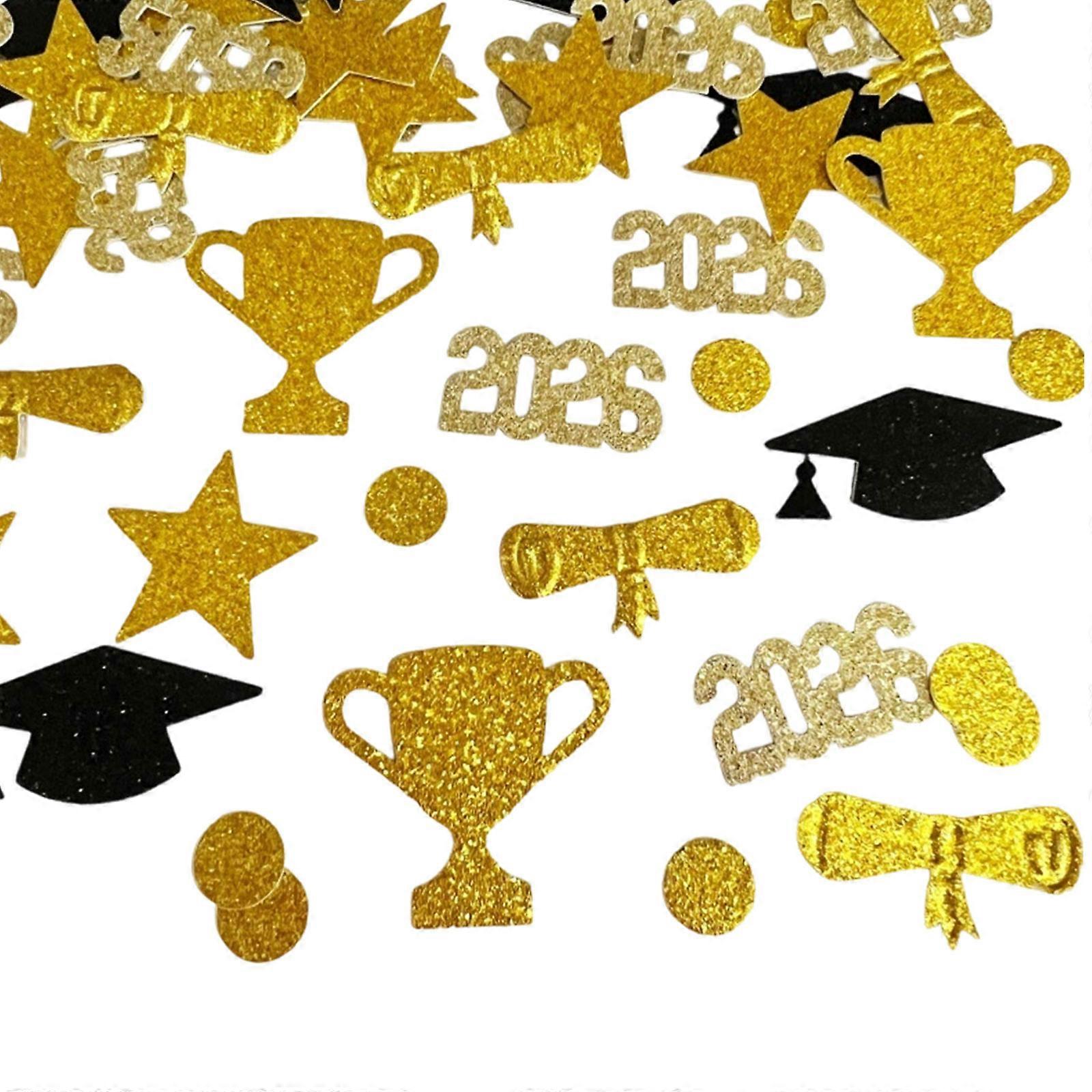 2026 Graduation Confetti Set 100/200Pcs Gold Glitters Cap Star and Diploma Shapes Graduation Photo Props for Parties Multicolor