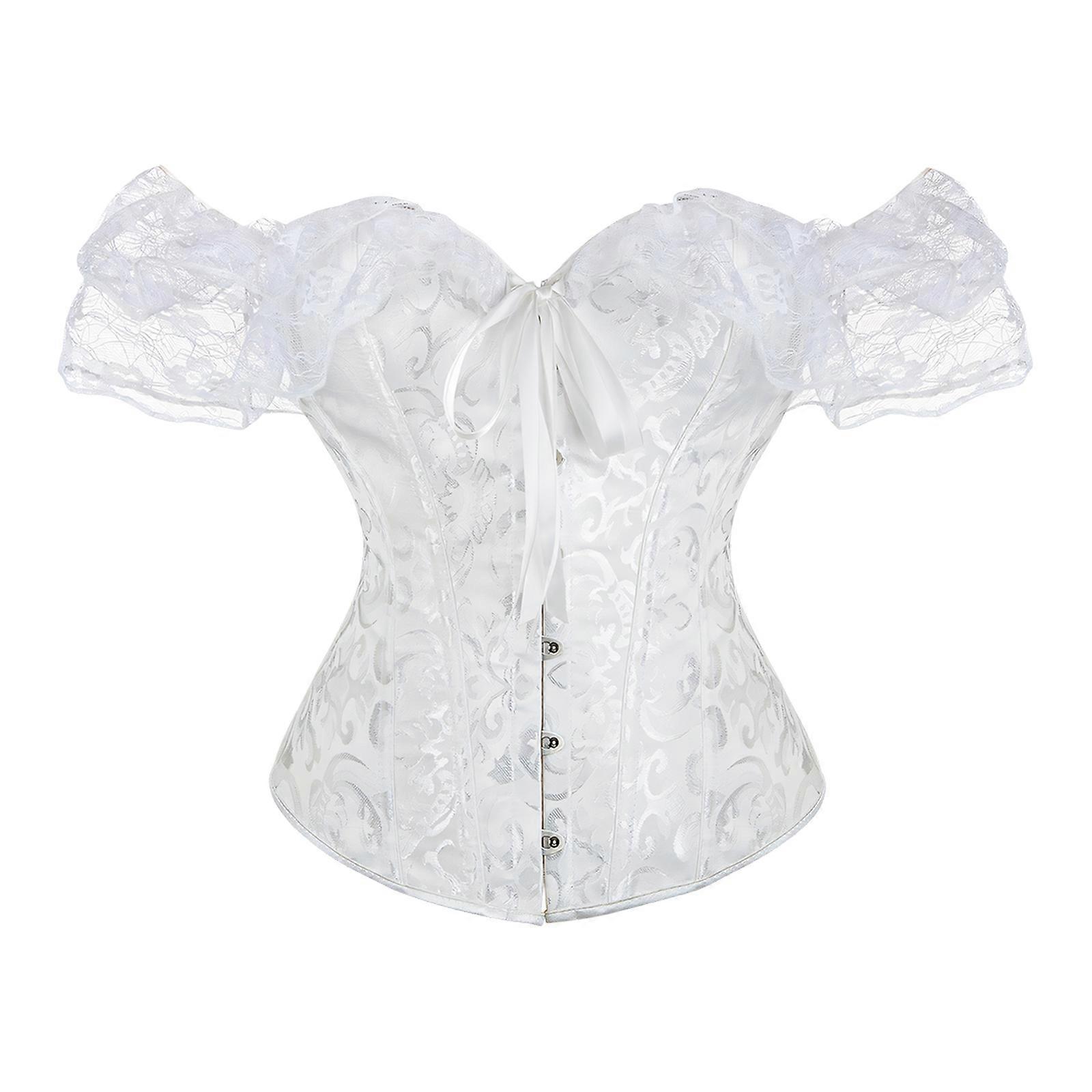 Elegant Lace Off Shoulder Corset Top Waist Cincher Bustier With Floral Print And Adjustable Ties For Women White XL