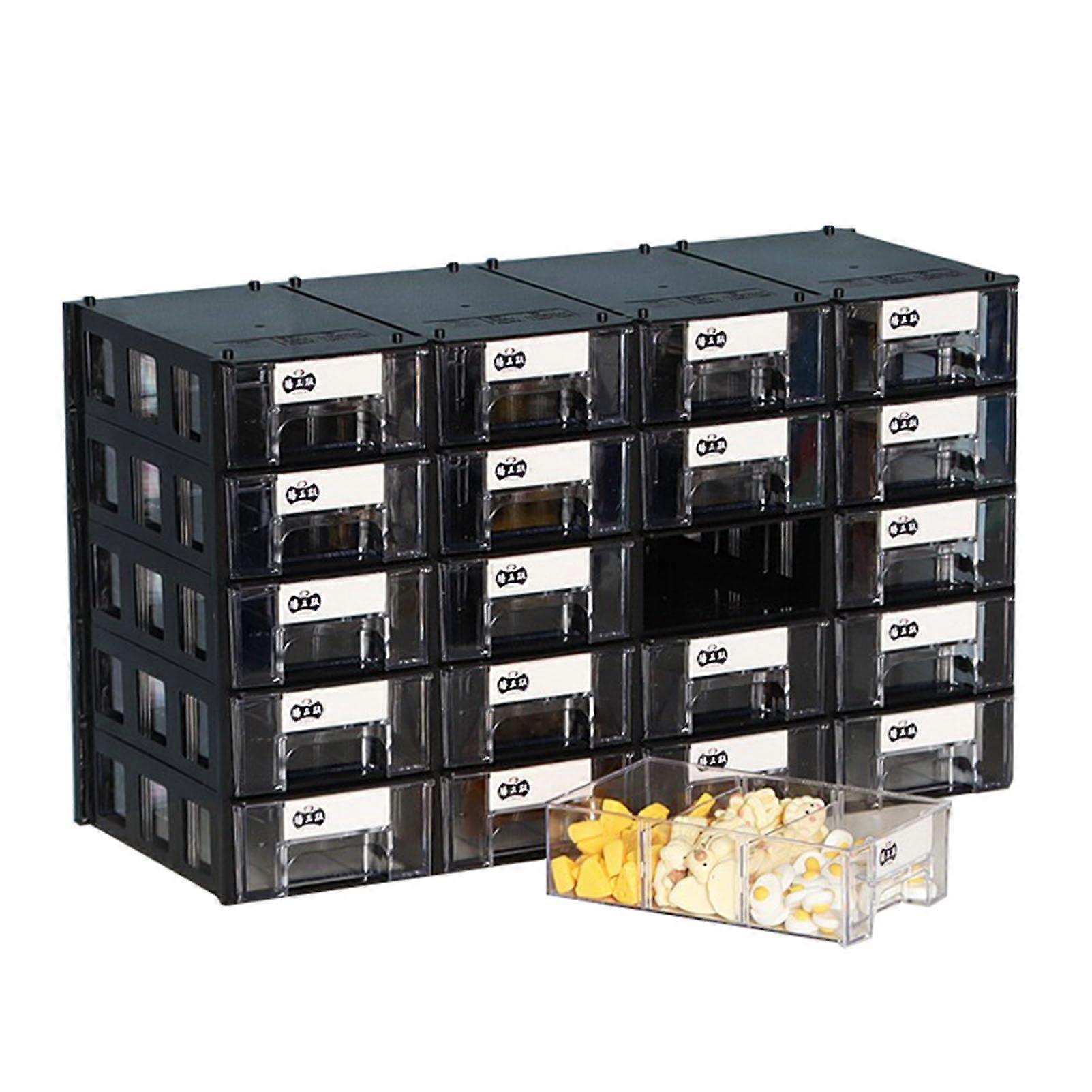 20 Drawer Storage Organizer Black Garage Cabinet with Dividers and Tags for Tools and Hardware