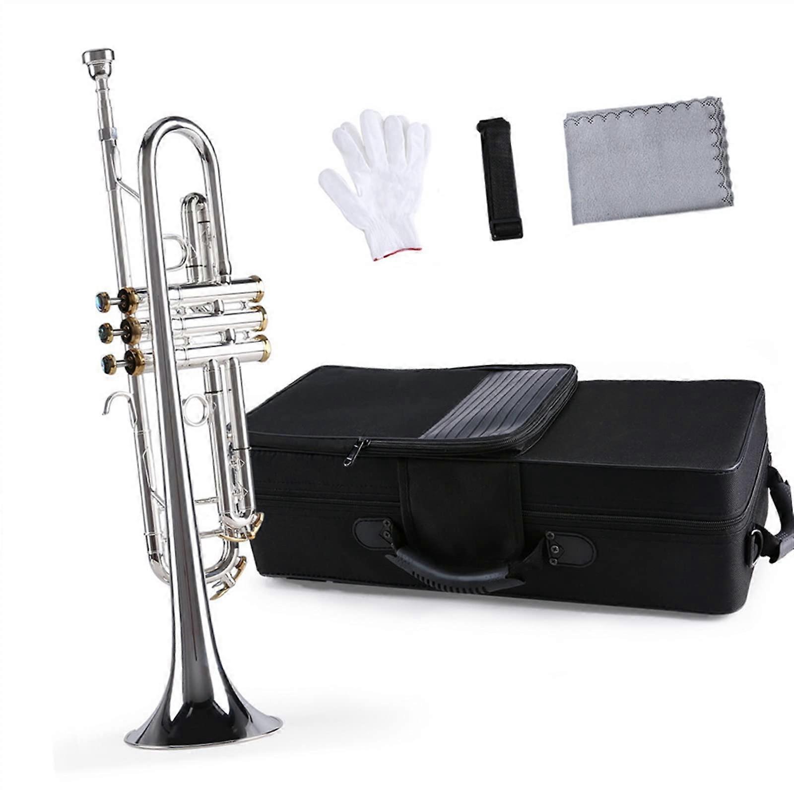 Bb Trumpet for Beginners Silver Plated Brass Standard Student Model with Case and Clear Sound