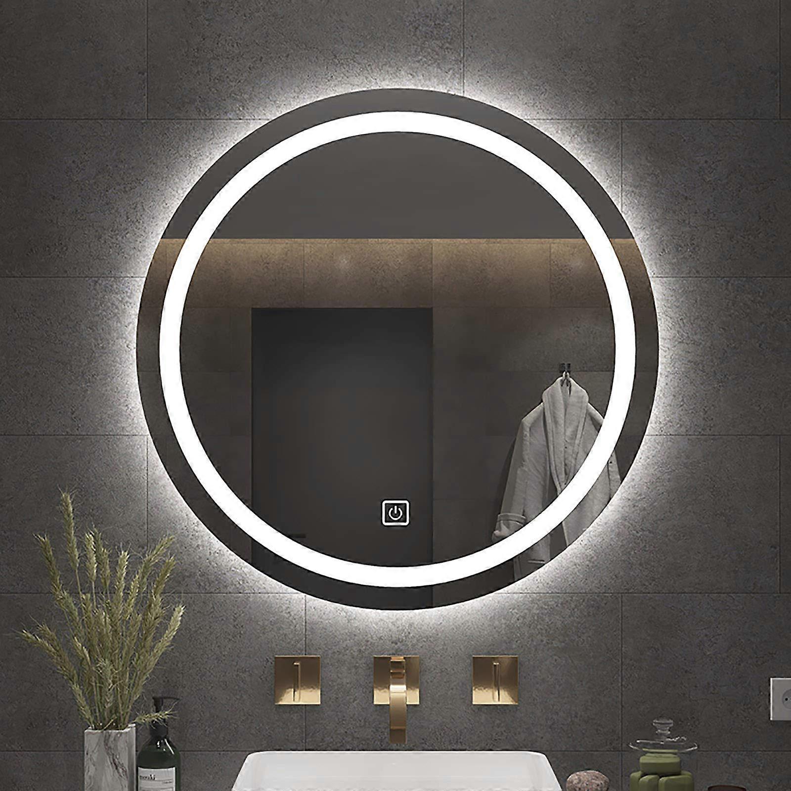 Round LED Bathroom Mirror with Adjustable Brightness, Wall Mounted Backlit Vanity Mirror