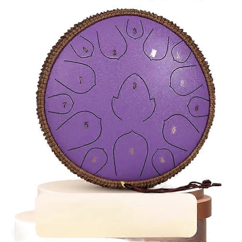 Steel Tongue Drum 13 Inch 15 Notes Purple Hand Pan Percussion Instrument with Bag and Mallet Holder