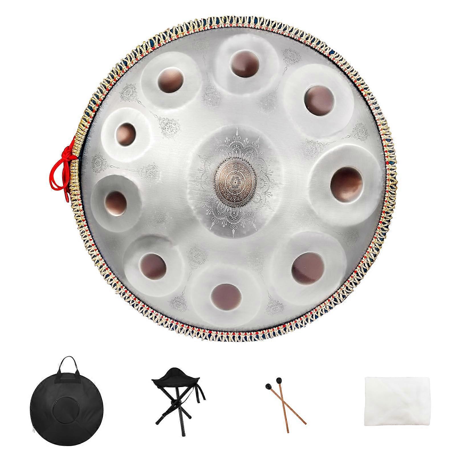 22 Inch Handpan Drum D Minor 432Hz Silver Gold Finish Steel Tongue Drum for Home and Studio