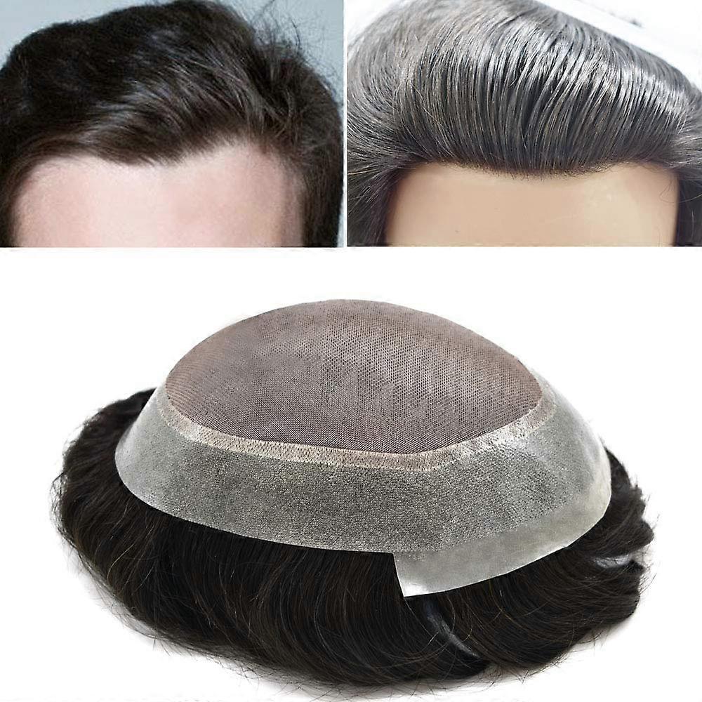 Men's Toupee 10x8 Inch Human Hair Hairpiece Natural Black 120% Density Mono Base Wig