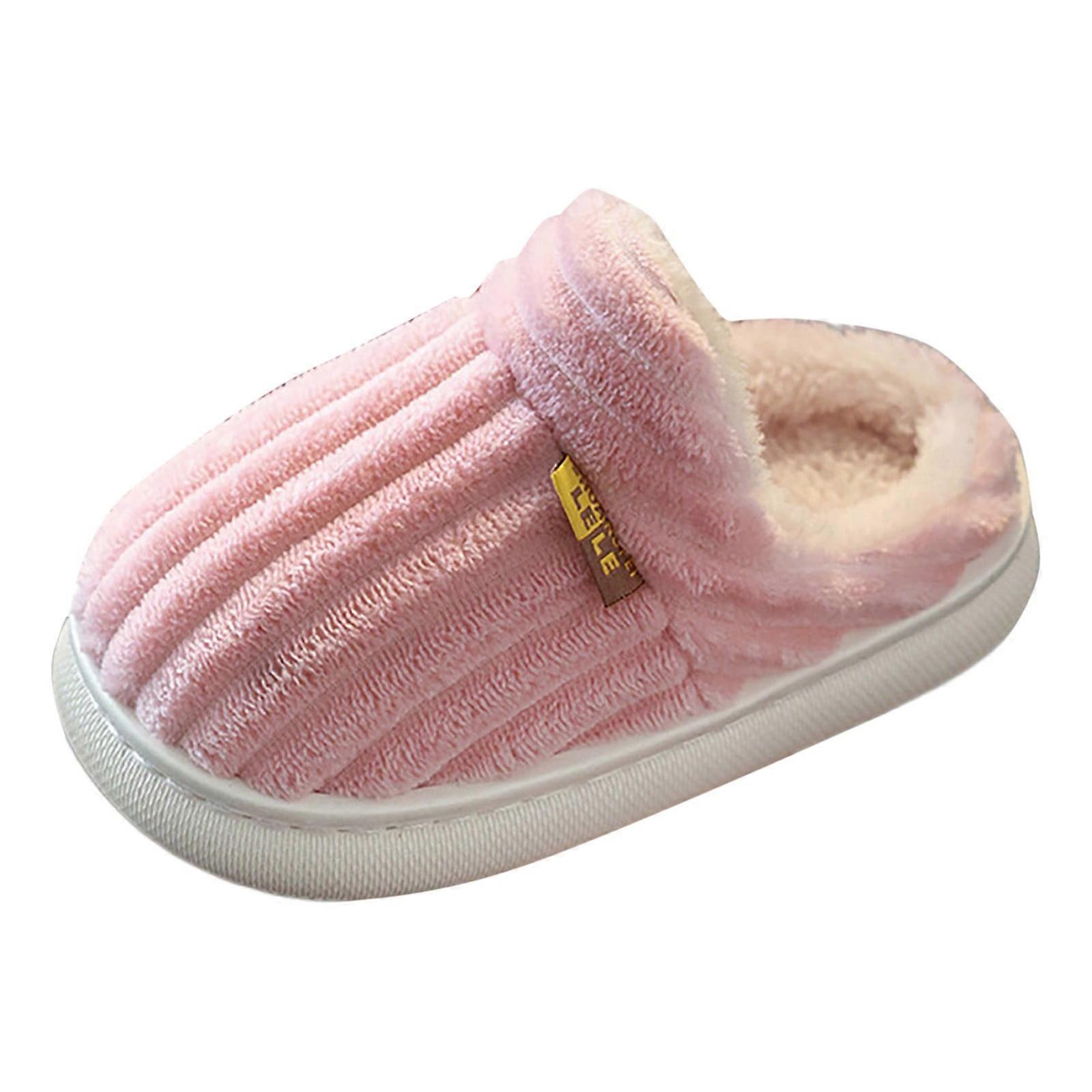 Toddler Slippers,Winter Fashionable Versatile Toddler Kids Vertical Texture Warm Non- Indoor Slippers Comfortable,Kids Slippers,Pink,9.5