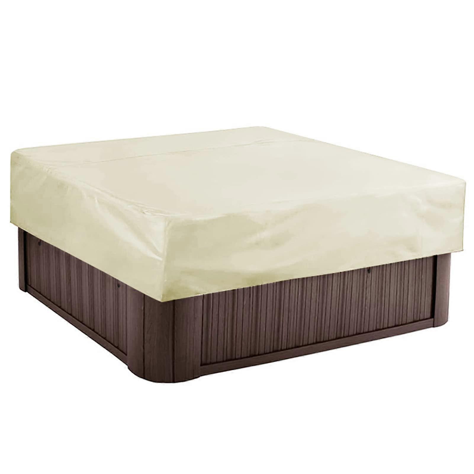 Hot Tub Cover Waterproof Oxford Fabric Heavy Duty Outdoor Spa Protector Beige 220x220x30cm