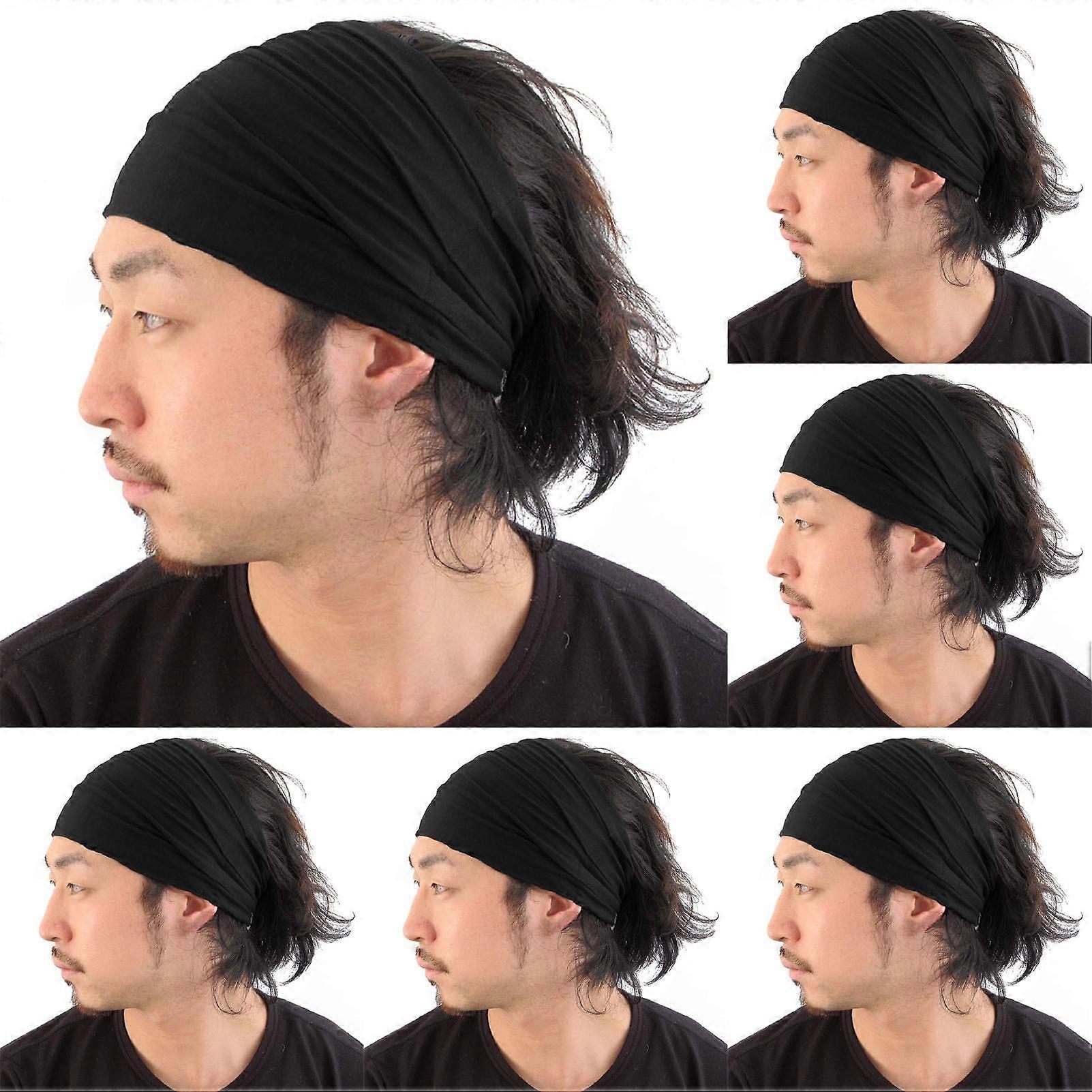 Solid Color Stretch Headband Japanese Style,Comfortable Lightweight Head Wraps Elastic Bandana,Workout Headband for Men and Women 6pcs