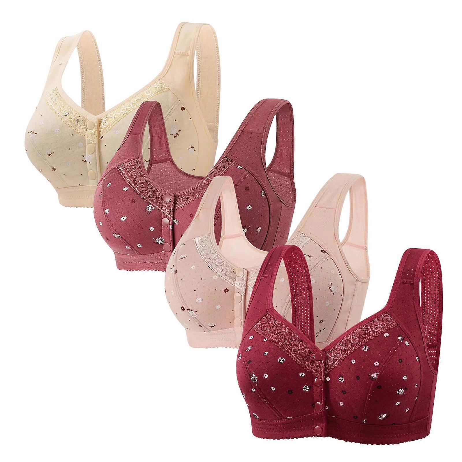 Sports Bras For Older Women Front Closure Bra No Underwire Cotton Bras Breathable Comfy Soft Bras With Support And Lift 4pcs Beige S