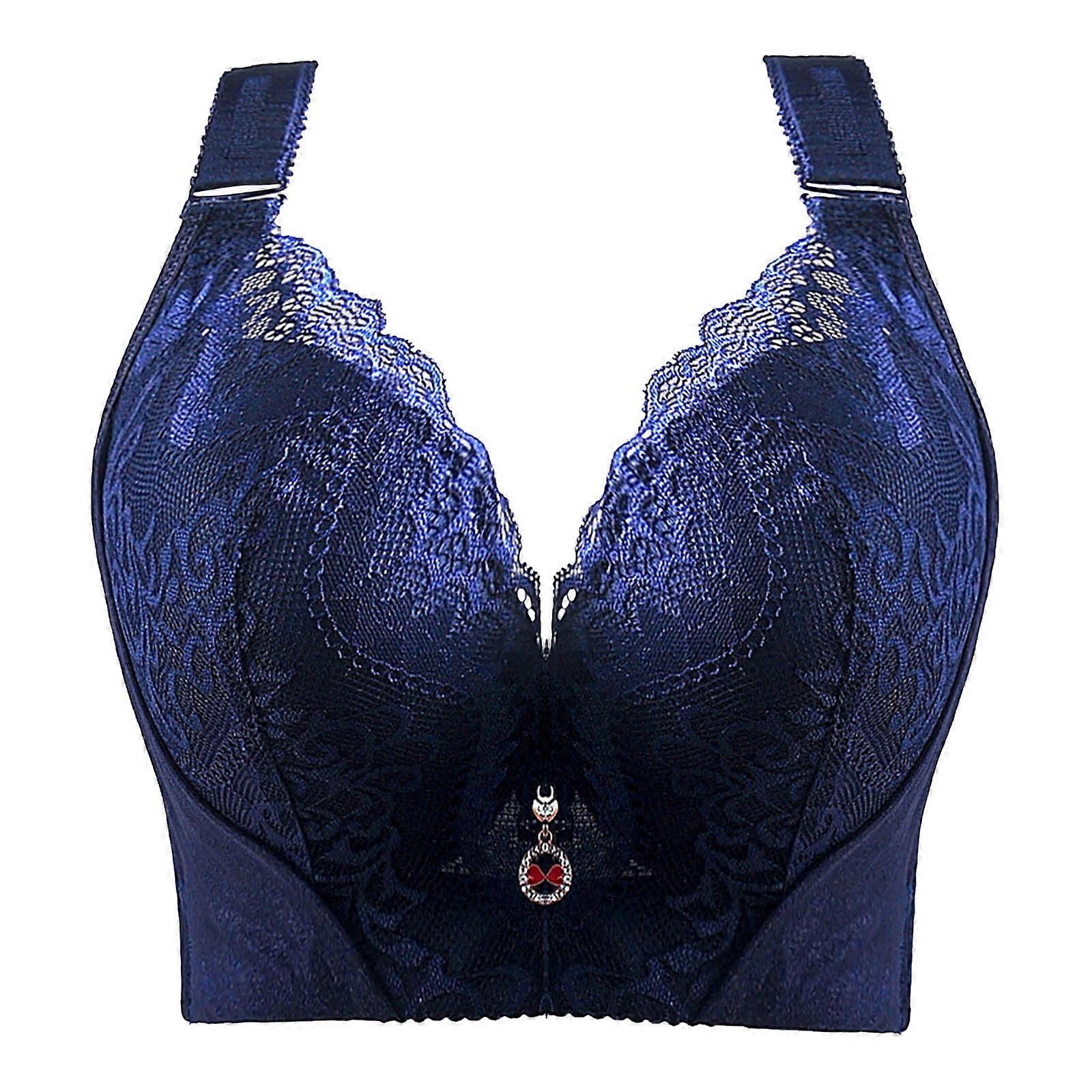 Lace Bras for Women Push Up Underwire Underwear Plus Size Cup Lingerie Gather Comfortable Bralette Blue 36D