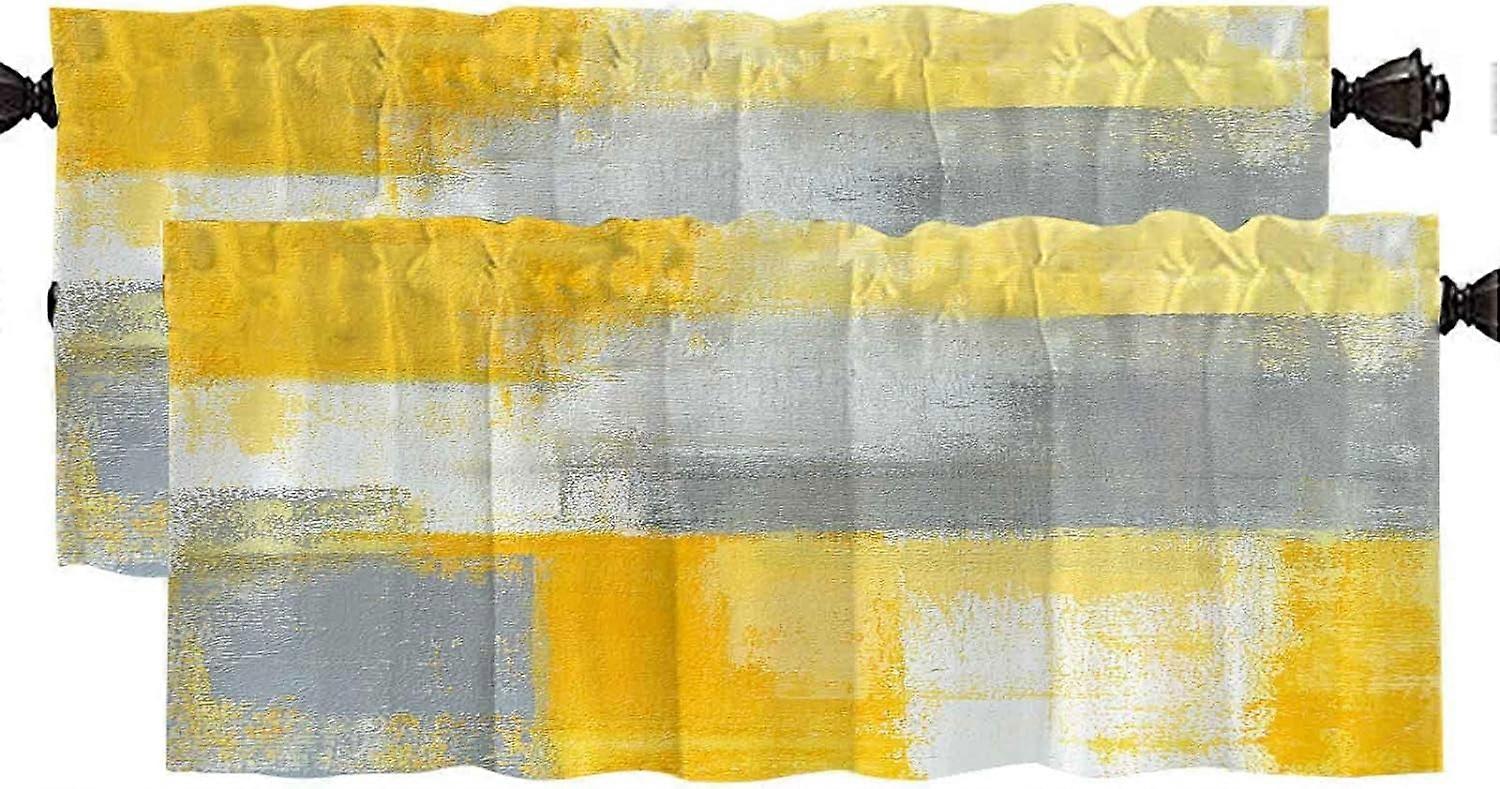 Grey and Yellow Abstract Art Window Treatment Valances Valance Kitchen Curtain Valances for Kitchen/Bathroom/Laundry Valances Set 52X18 Inches 2 Pack