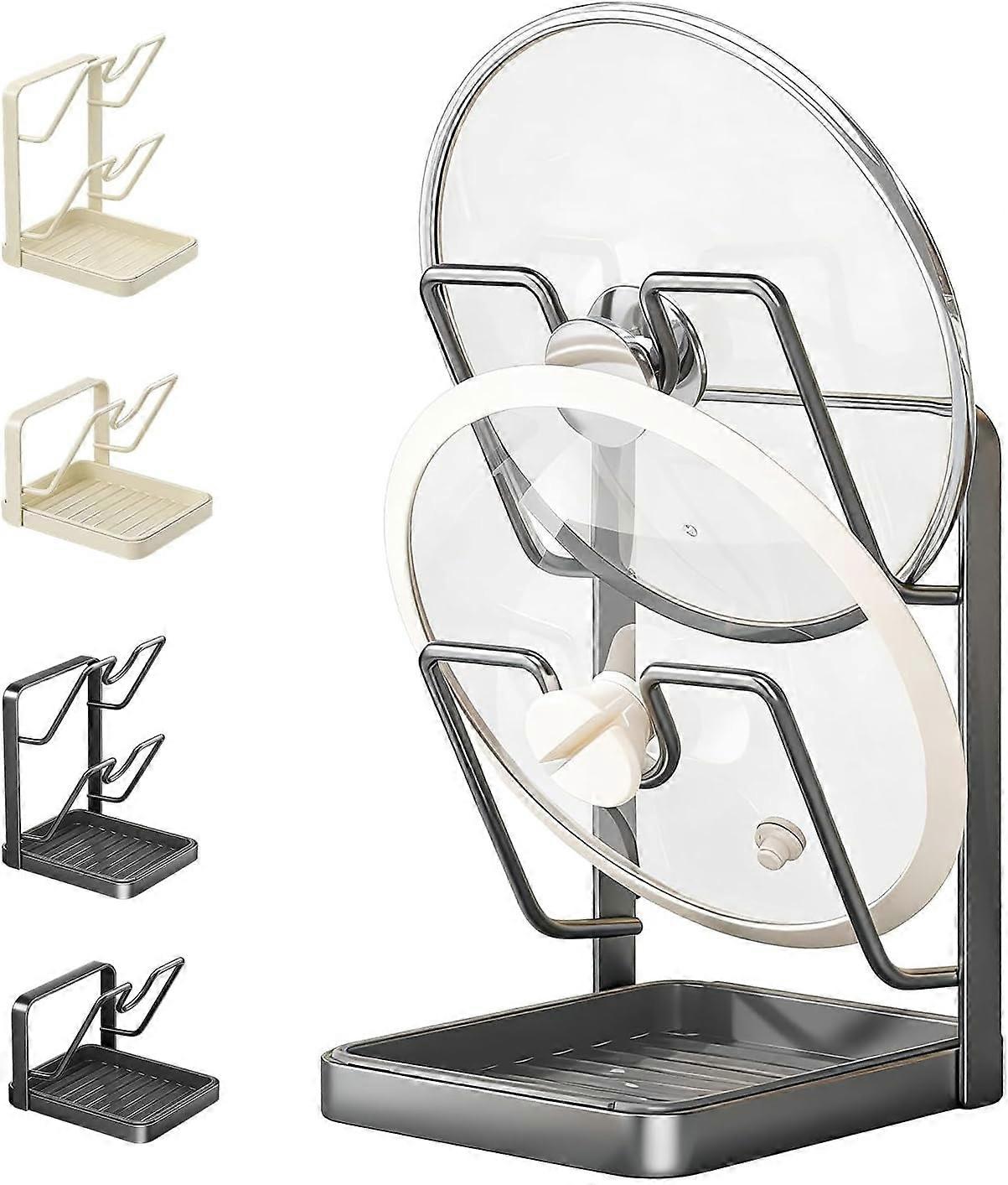 Leutsin Countertop Pot Lid Holder with Spoon Rest, Double-Layer Kitchen Organizer Stand for Stove Top (Gray) – Compatible with Standard Lids