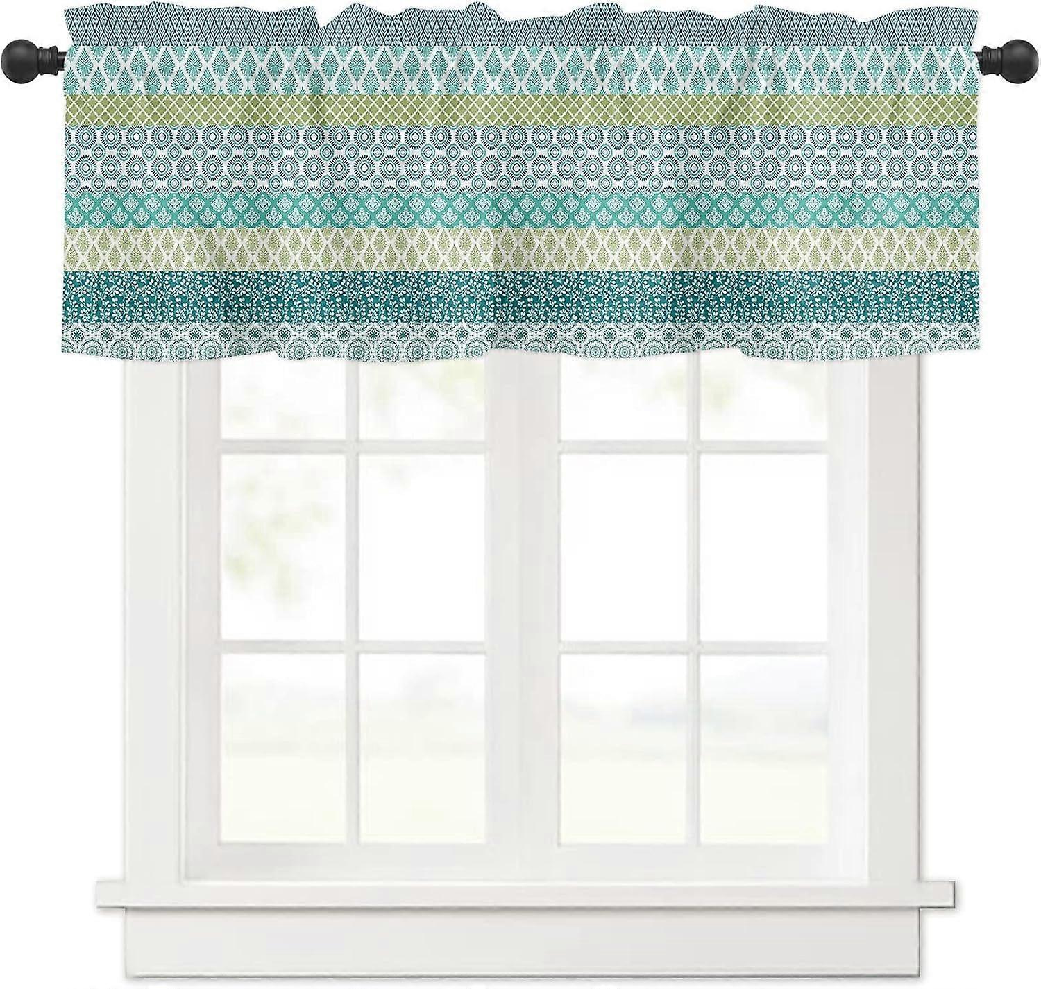 Boho Rod Pocket Curtain Valance, 54x18", Teal Blue Green Geometric Stripes, 1 Panel for Kitchen/Bathroom/Bedroom Windows