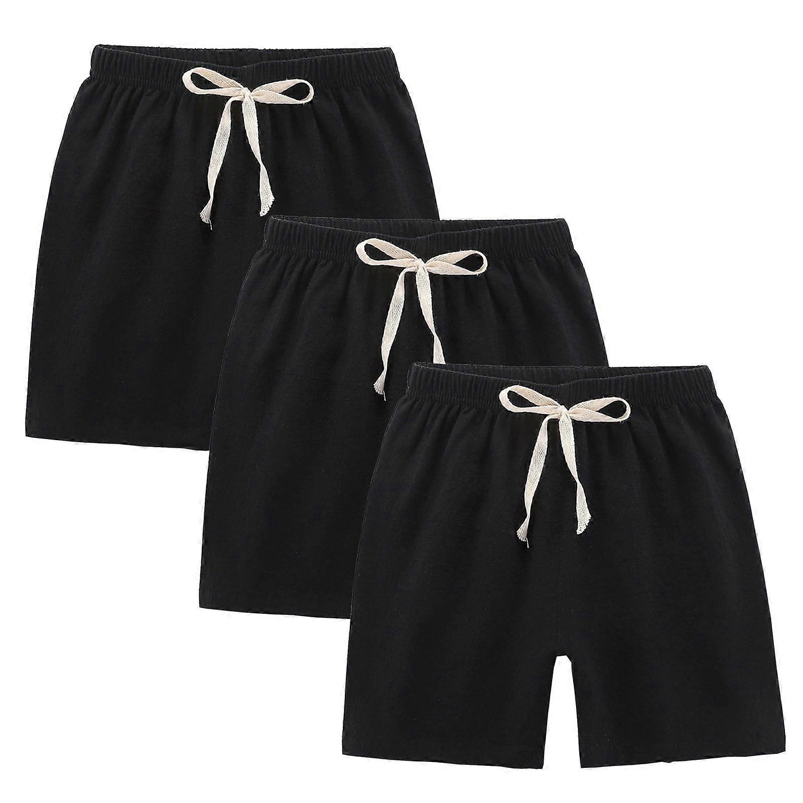 Toddler Boys Girls Shorts 3-Pack Cotton Linen Summer Casual Shorts Kids Solid Sport Short Pants with Drawstring Black 3-4 Years