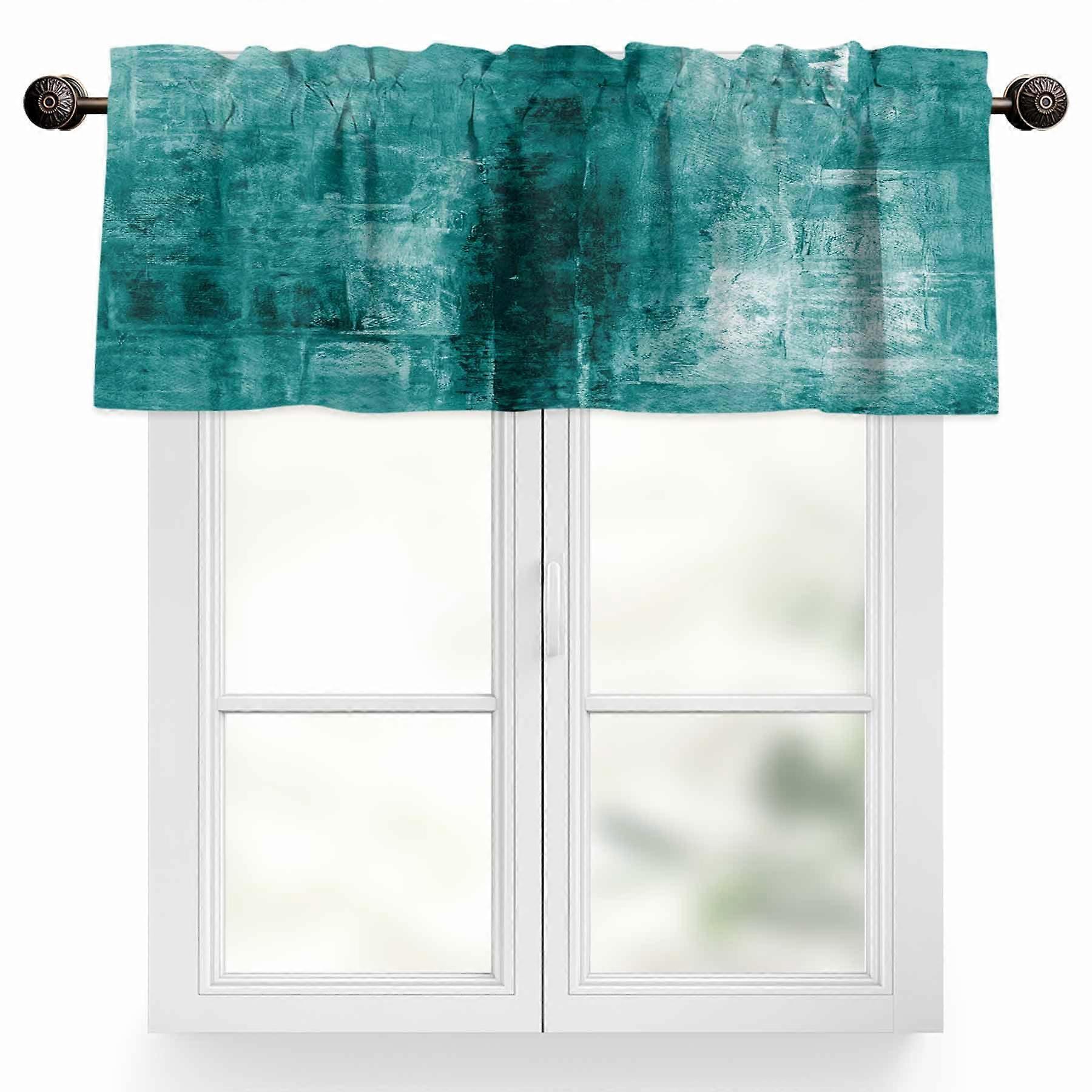 Teal Abstract Valance 42x12in, Vintage Graffiti Texture, Rod Pocket, Light Filtering – 1 Panel, Compatible with Standard Rods