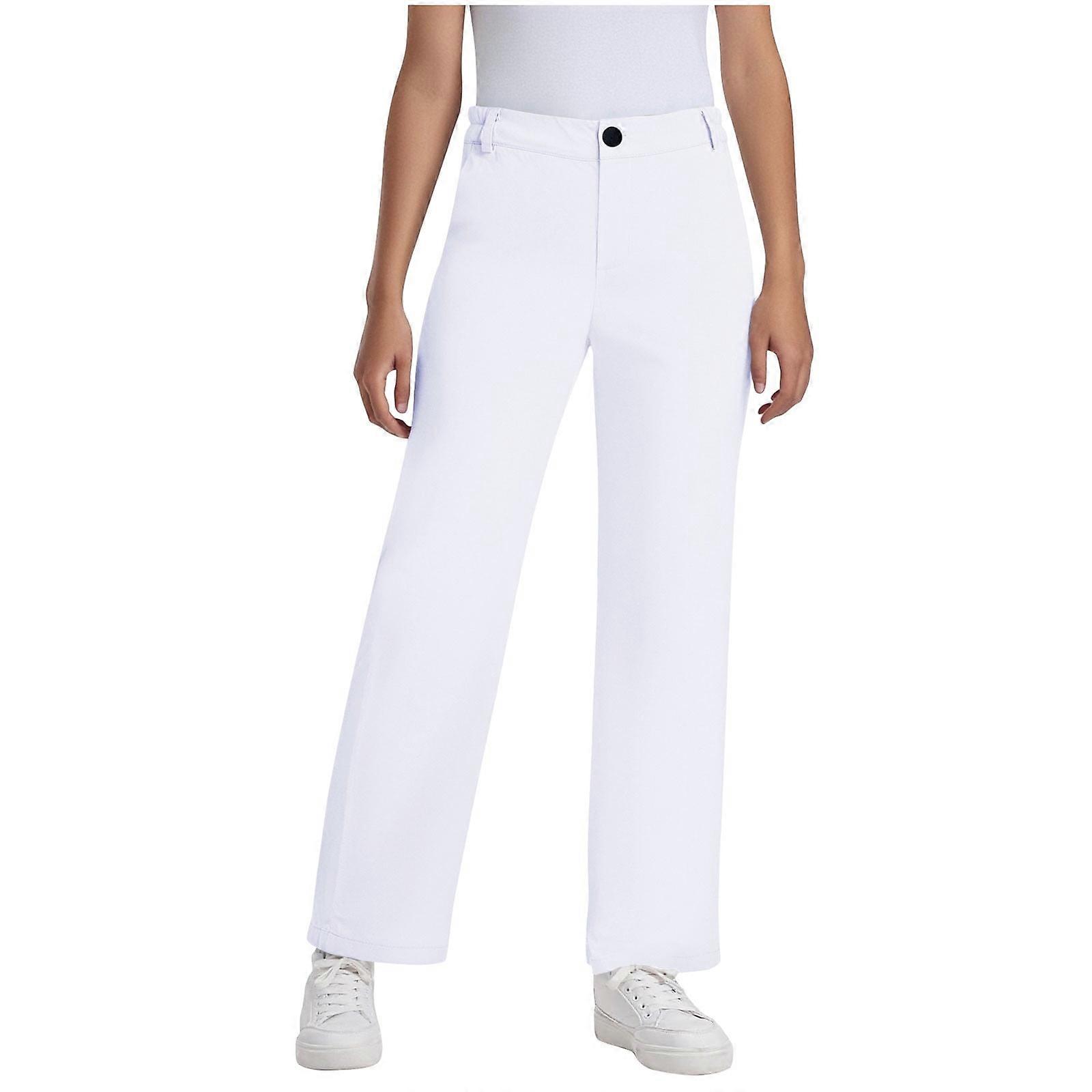 Boys School Uniform Pants Chino Pants for Toddler to Youth Girls Kids Adjustable Waist Cotton Regular Slacks White 15-16 Years