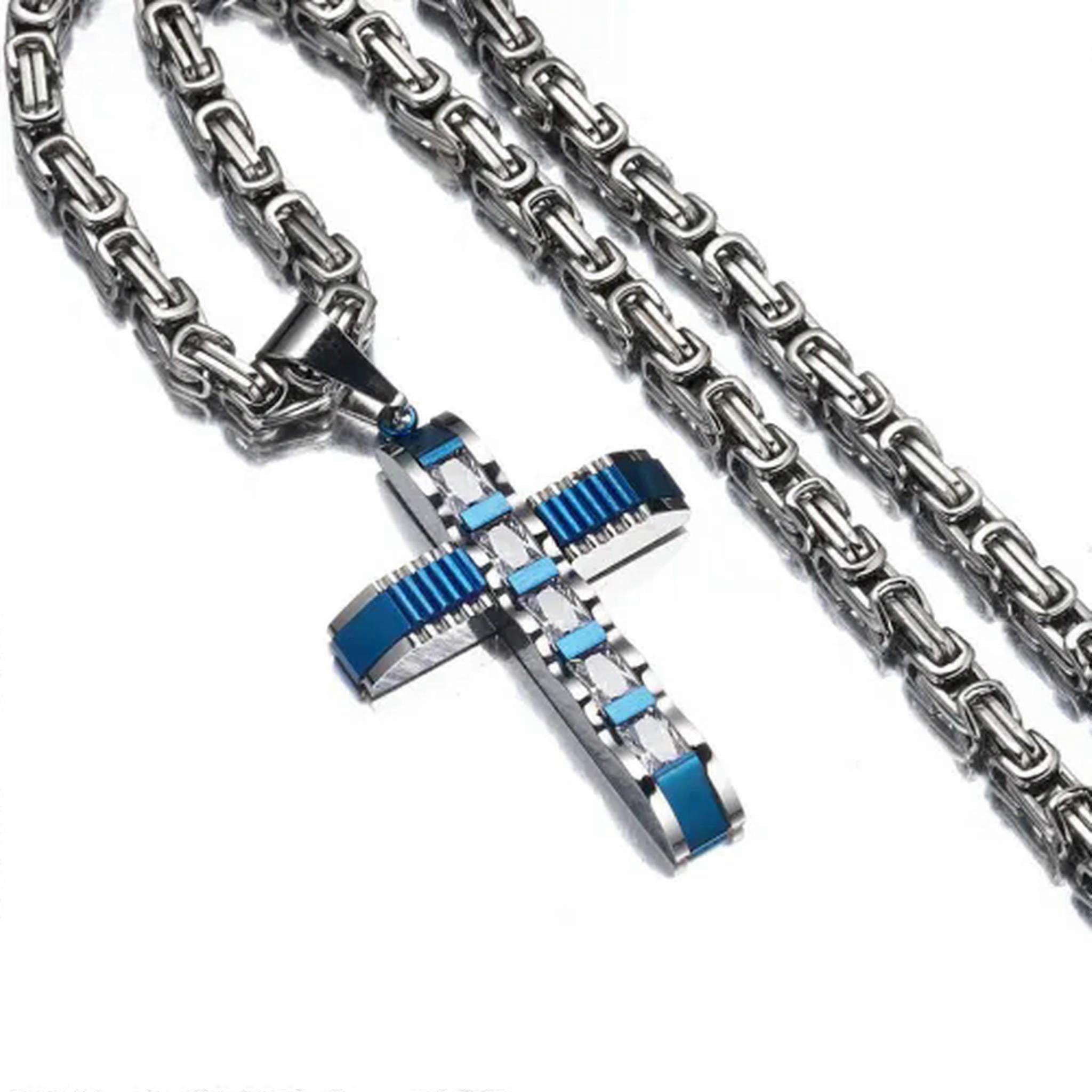 Men's Cross Pendant Gold Black Silver Stainless Steel Byzantine Chain Necklace-Silver Blue-26 inch Necklace Our jewelry collection is meticulously crafted to be a style standout. The designs are modern and truly distinct. These jewels can pair seamlessly with anything in your closet. The quality is top-notch. We use premium materials that are durable and resistant to fading. You can wear them for ages without worrying about losing their shine or color. In a nutshell, if you're a fashion-forward person seeking accessories that are both trendy and reliable, our collection is for you. It's like having a secret weapon in your style arsenal that never lets you down. Come and explore, and find the pieces that make your heart flutter! Ideal for giving as a gift. Suitable for any occasion. Completely new and of top quality. Easy to match and wearable anytime, anywhere. Made of high quality and environmentally friendly materials.