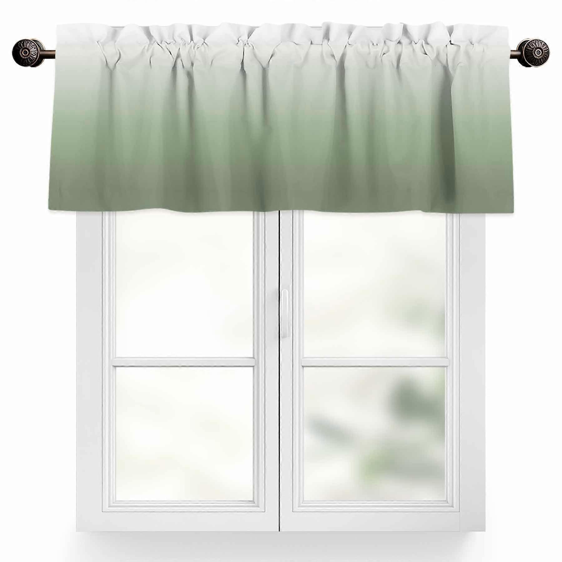 Sage Green 60x18in Gradient Ombre Valance, Rod Pocket, Light Filtering – 1 Panel, Compatible with Standard Rods