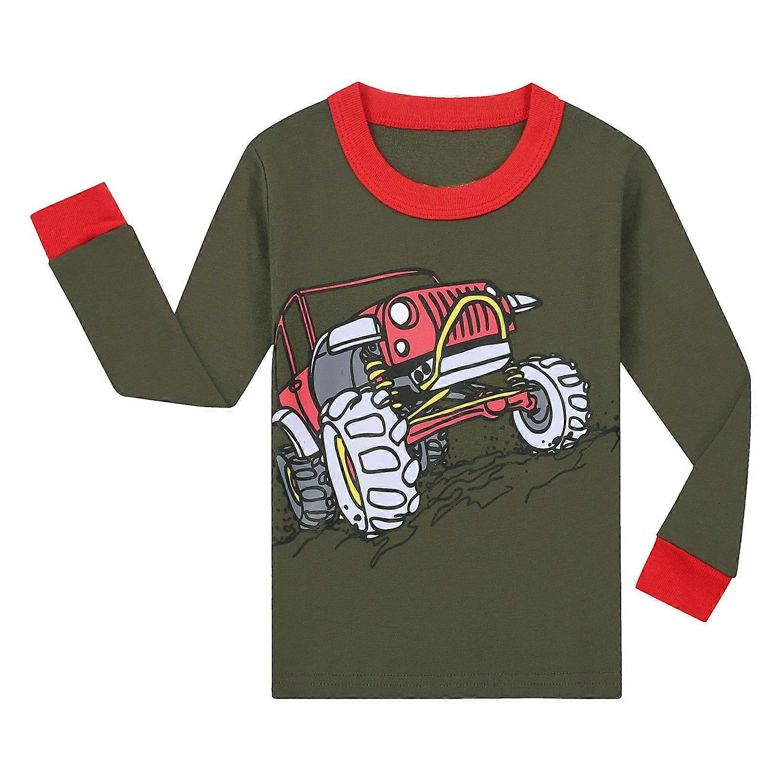 Children's Homewear Long Sleeve Boys Cartoon Cute Car Print Pajamas Sets Autumn Winter Warm Sleepwear