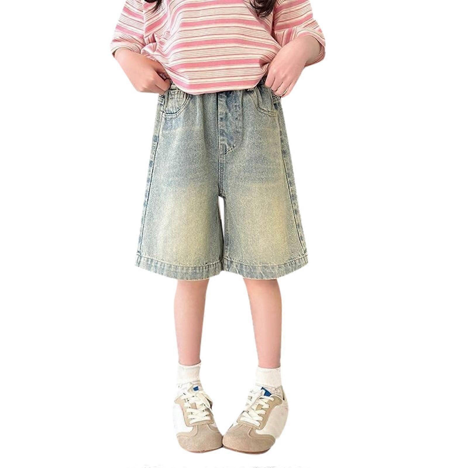 AWZXDE Girls Denim Capri Shorts For Girls Summer 2026 Lightweight Stretchy Waist Casual 5 Inch Shorts Comfortable Blue,13-14 Years