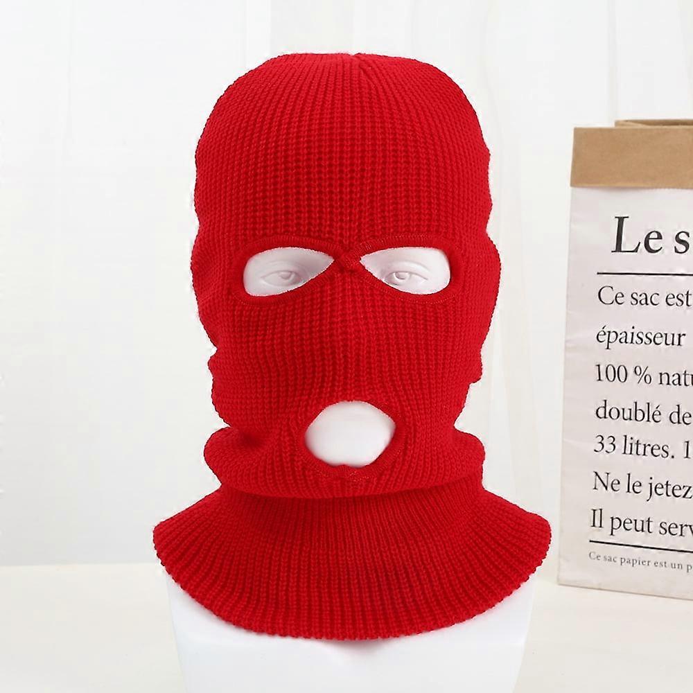 3 Hole Double Knitted Windproof Breathable for Men Women Knit Hat-bright red-Face Neck Gaiter Outdoor Sport Warm Full Face