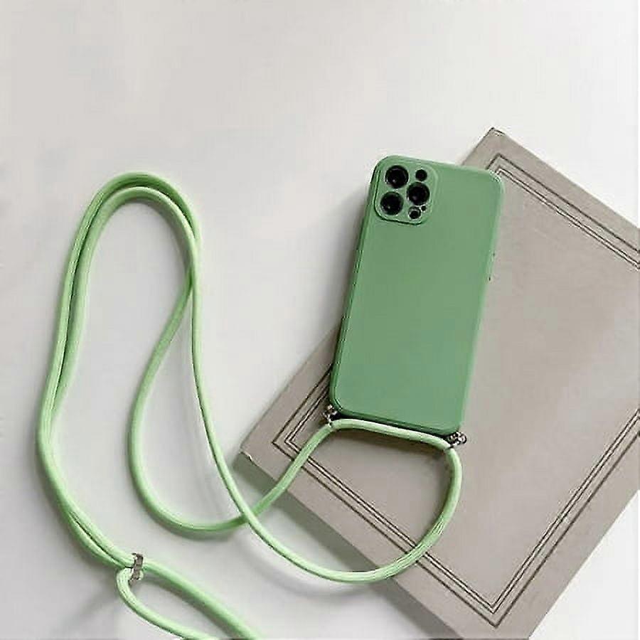 Mint Green Crossbody Necklace Strap Lanyard Cord & Liquid Silicone Phone Case for compatible with iPhone 13/12 Pro/12/11/XR/XS/8/7/6s/SE2