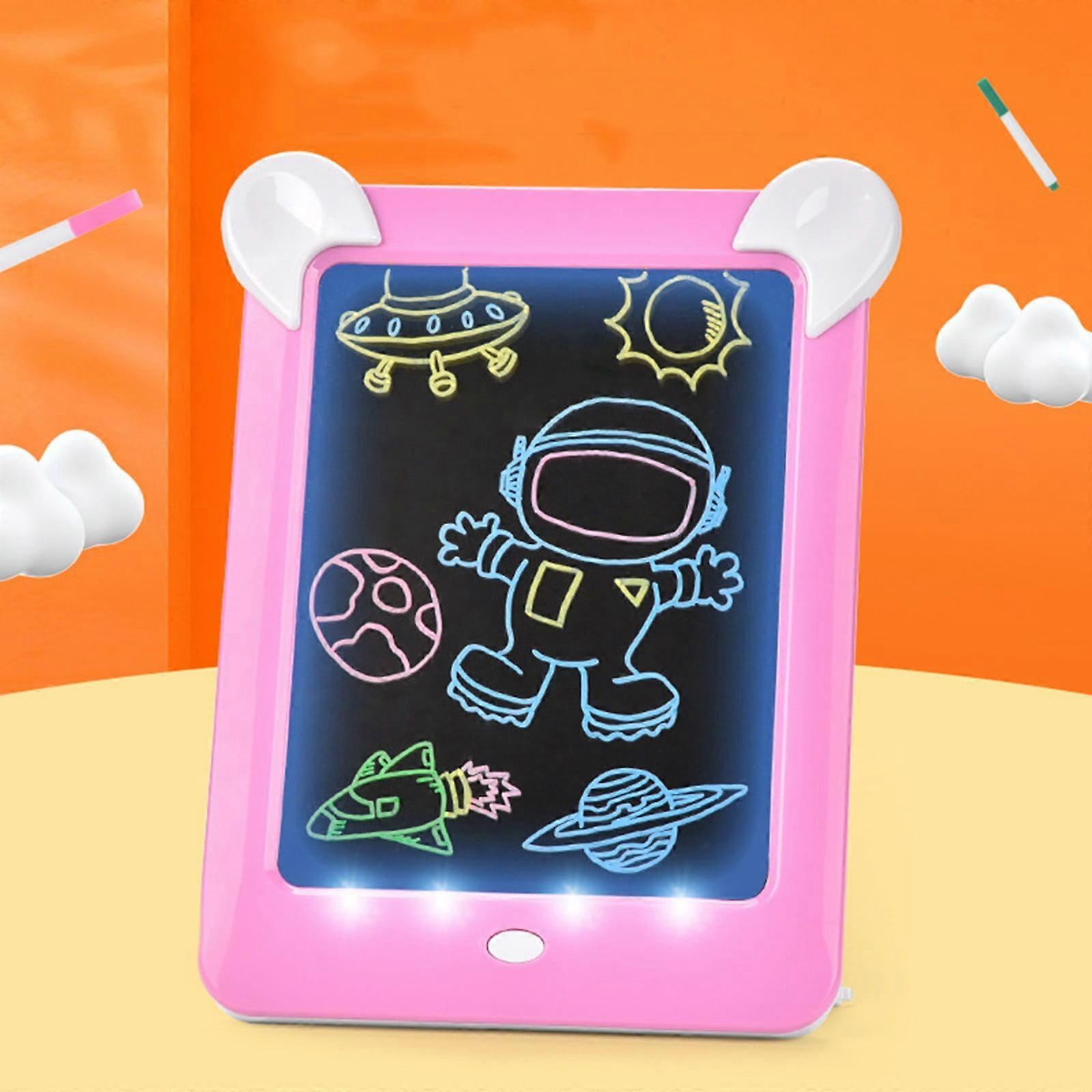 LED Light-Up Drawing Tablet for Kids, Colorful Electronic Pad, Educational Toy, Christmas Gift for Boys & Girls – Bear Ears, Pink, Compatible with