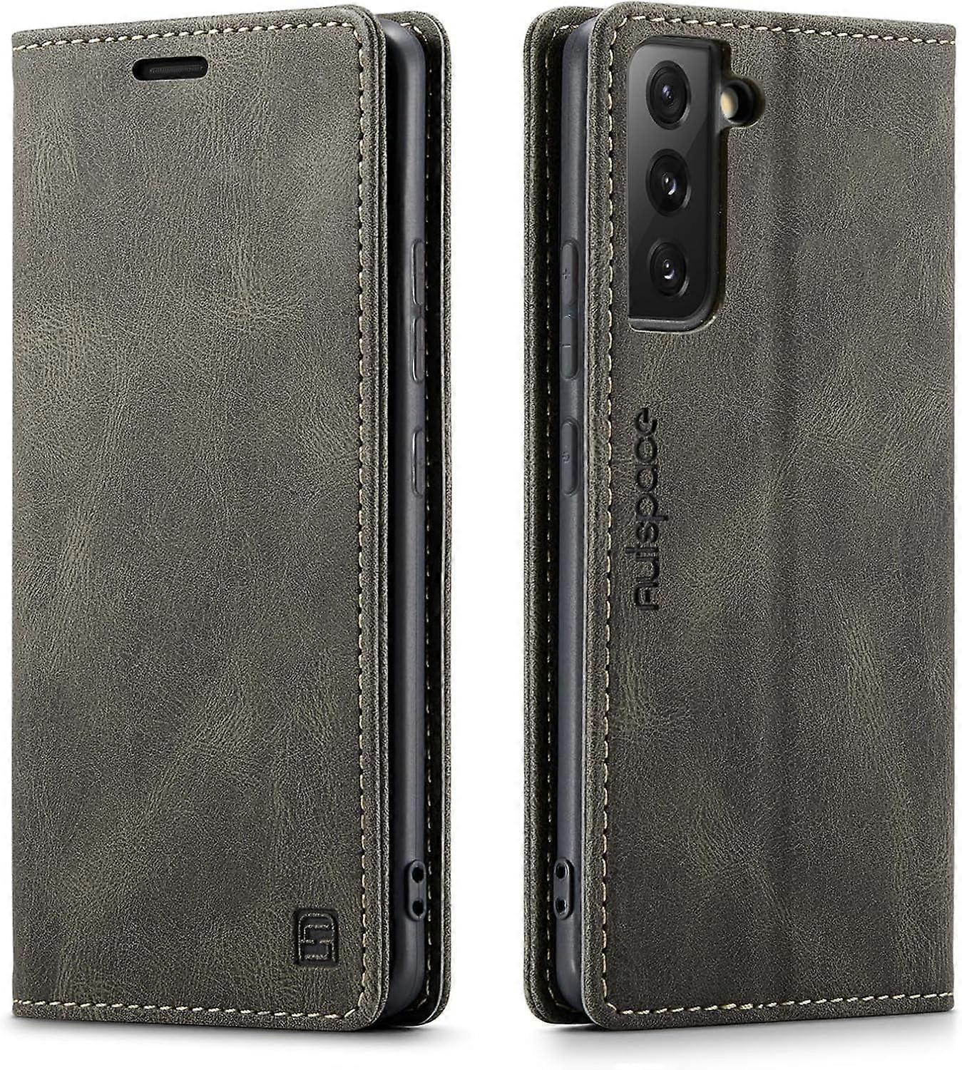 Flip Wallet Phone Case with Hidden Stand & Card Slot, Drop-Proof, Compatible with Samsung Galaxy S23/S22/S21/S20/S10/S9/S8/Note20/10/Plus/FE (Brown)