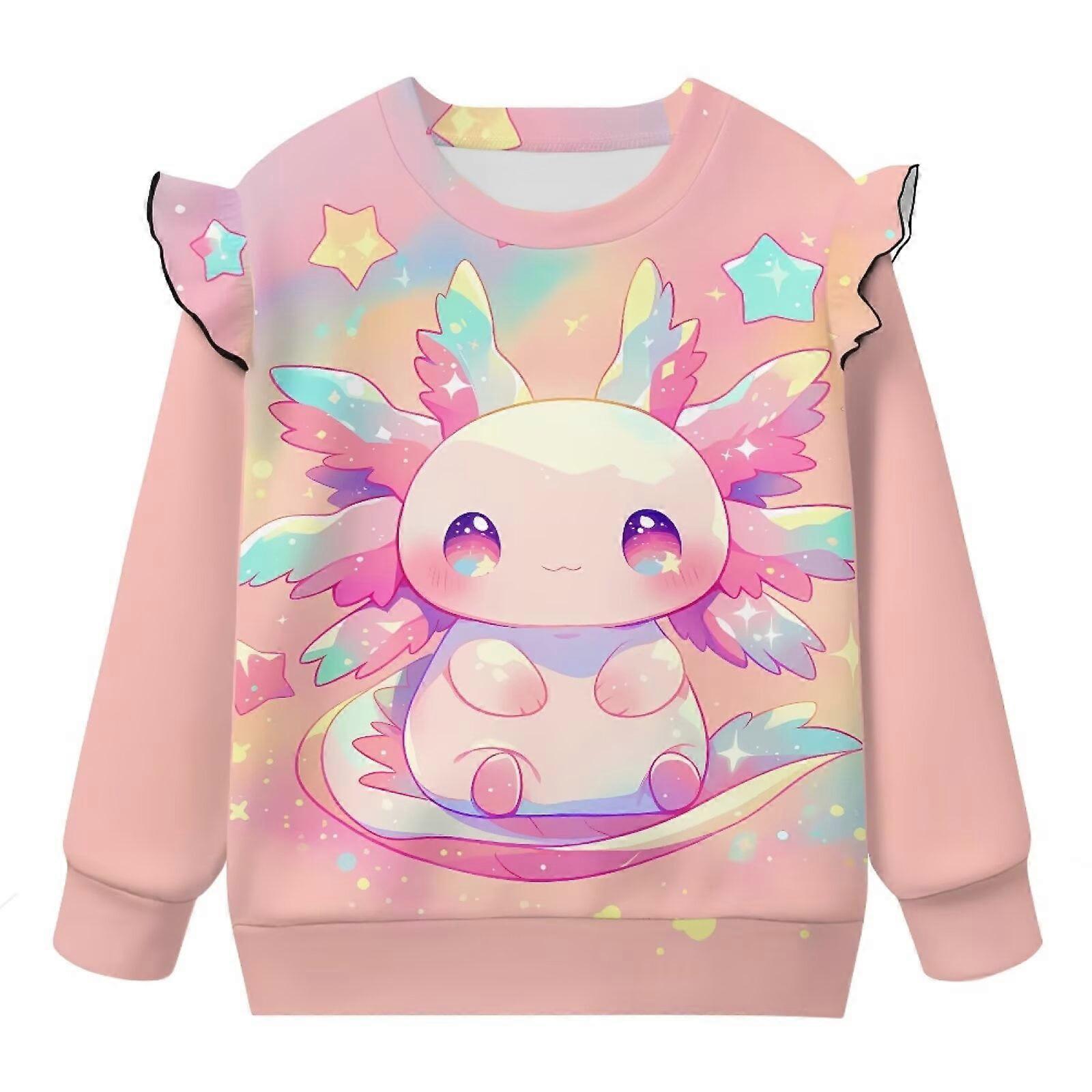 Cute Pink Salamander Sweatshirt for Toddler Girls 7-8Y, Long Sleeve Crewneck Pullover with Ruffle Shoulder – Fall Fashion, Compatible with Kids