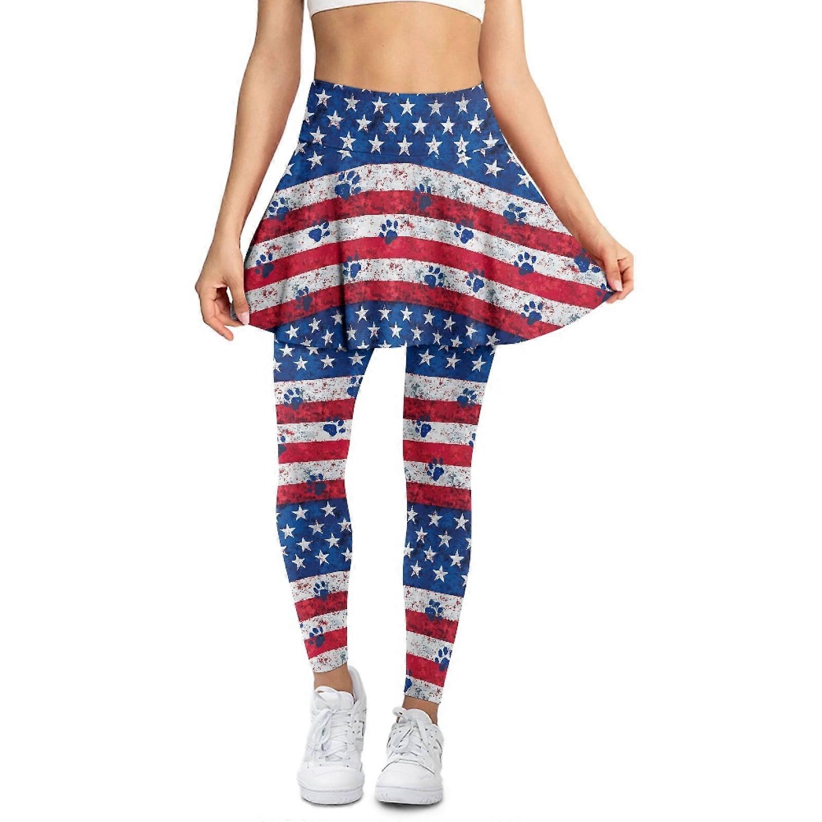 American Flag Splash Paws Blue Gym Skirt with Leggings for Women – Full Length, Stretchy, Yoga/Golf/Running – Compatible with XS