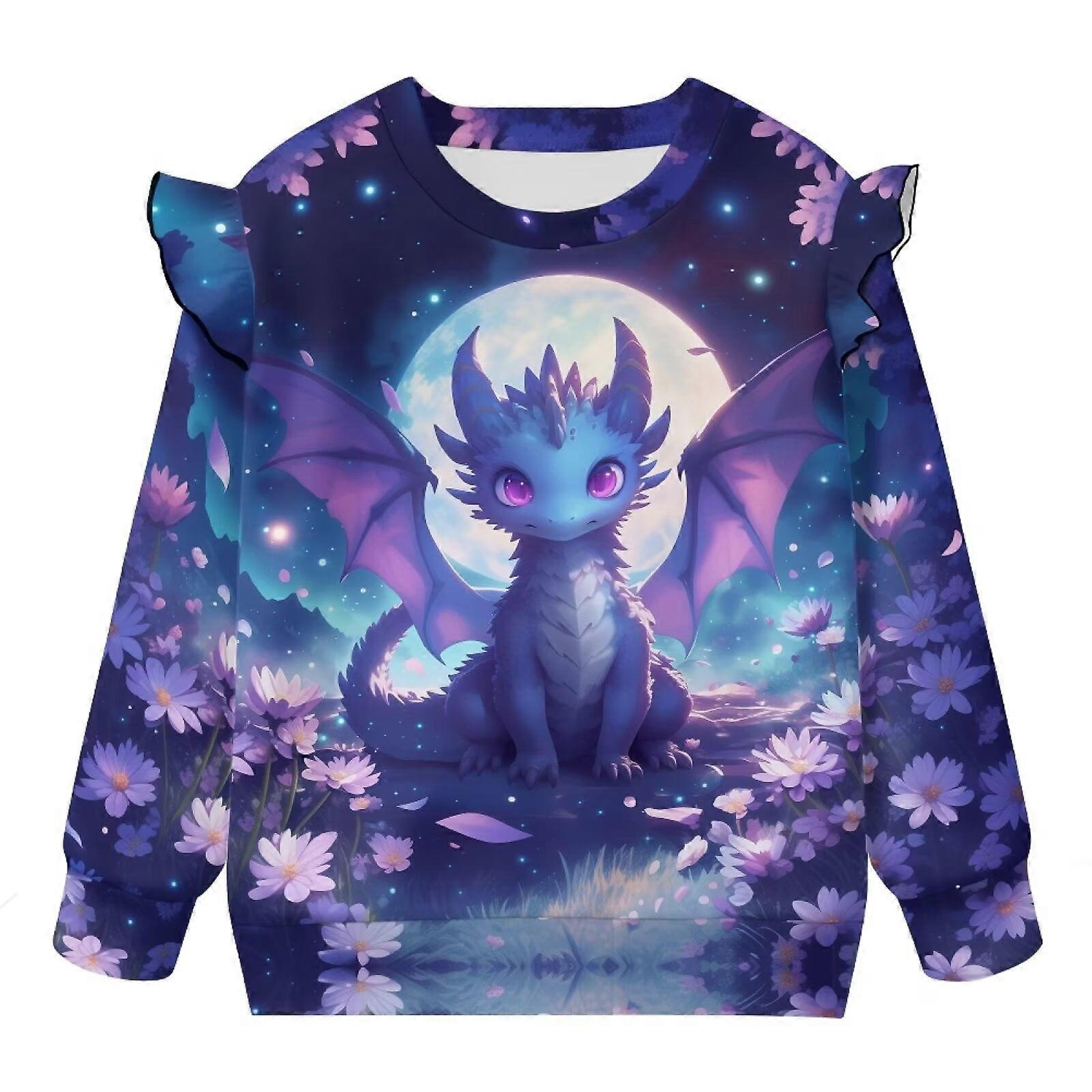 Girls Ruffle Sweatshirts 2T 3T Round Neck Purple Dragon Pullover Sweater Tops Toddler Oversized Sweatshirt Long Sleeve T Shirts Fall Spring Clothing