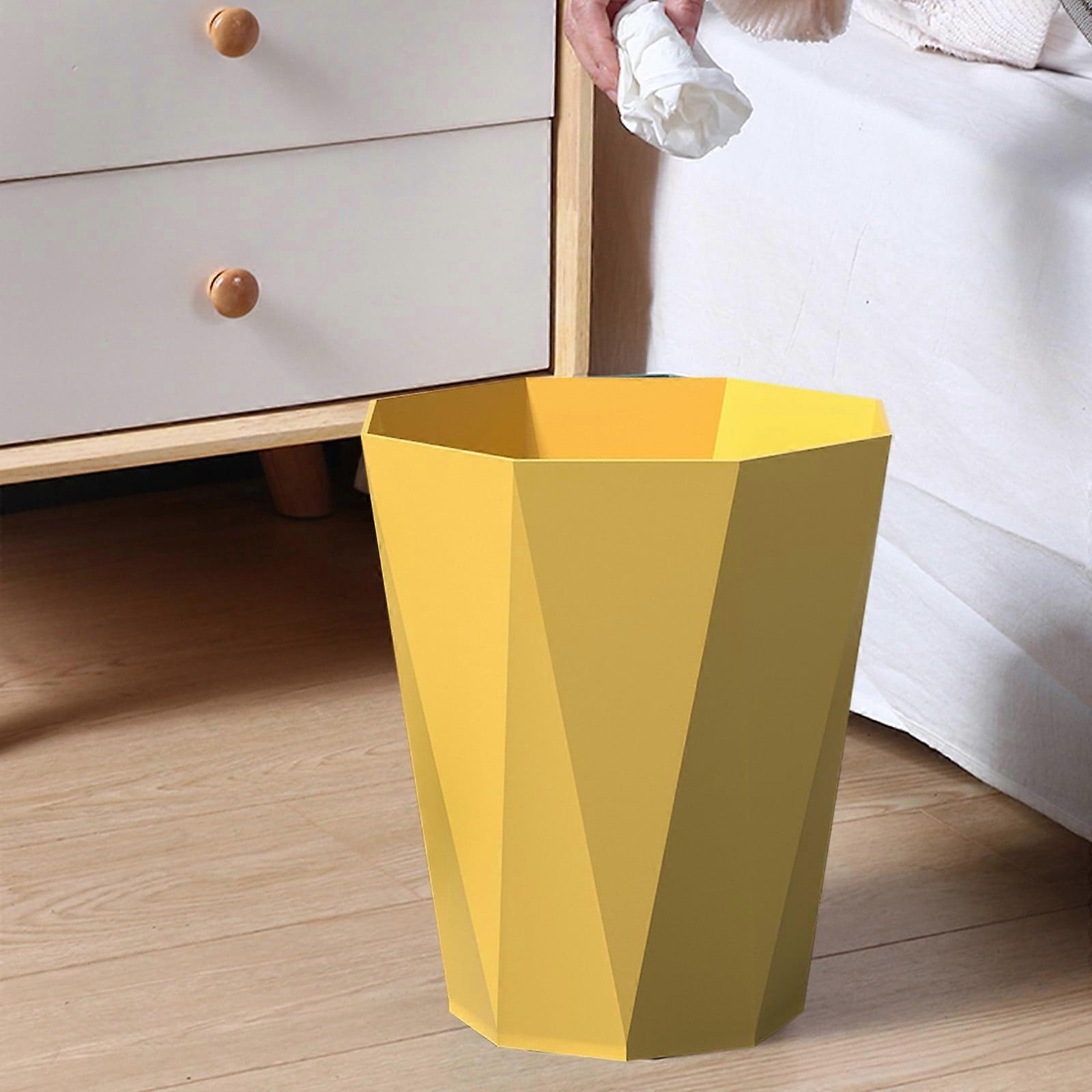Household Kitchen Trash Can Bedroom Toilet Large Lidless Press Ring Bathroom Trash Can Feature: Material: Plastic Color: yellow Product size: 29.5x23x15.3cm/11.61x9.05x6.02in Packing size: 29.5x23x15.3cm/11.61x9.05x6.02in Net weight: 300g/0.66lb Gross weight: 300g/0.66lb Descrition: Quality: Trash container is made of plastic. We use high grade polymers that is both sturdy and light. You can be assured that it will not under the strain of its enormous load.That is strong and easy to maintain,just wipe this can clean with damp cloth. Save Floor Space: This plastic garbage can is quite slim and narrow for its volume. It has small floor space, so it can be placed or hidden in almost any place. Space efficient,stylish,,economical,an convenient and effective way to recycle. Easy To Use: The of the lid is easy and convenient. Plastic ring holds trash bags in place and prevents them from slipping out. Suitable for Any Place: Slim that looks great and easily fits into narrow openings and small spaces. Fits well in bathrooms, offices or wherever space is limited.Great for bedroom, bathroom, office, display room, shop, kitchen, car and more. Stylish trash can with modern and that looks great and enhance your existing decor. Package Content: 1x Garbage bin Space-Smart Design;- Narrow 11.6" profile fits tight spaces between toilets, under desks, or in apartment corners while holding substantial capacity. Secure Bag Retention;- Built-in plastic ring keeps trash bags firmly in place without slippage - no more messy bag collapses. Durable & Lightweight;- High-grade polymer construction supports heavy loads (0.66lb empty) yet lifts easily for emptying. Multi-Room Versatility;- Ideal for bathrooms (holds 4-5 rolls of toilet paper), bedrooms, dorms, RVs, or as a recycling bin. Easy-Clean Surface;- Wipe-clean plastic resists stains and odors - choose from 4 modern colors to match your decor.