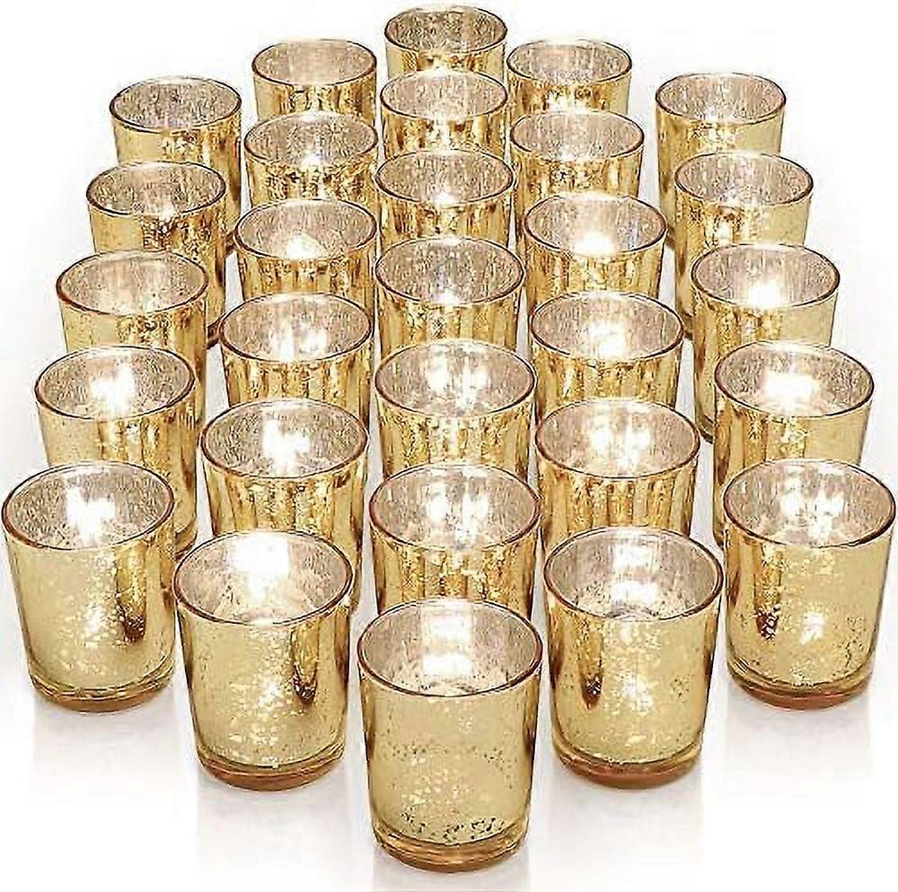 Gold Votive Candle Holders Set of 36, Speckled Mercury Glass – Boho Wedding, Fall, Halloween & Thanksgiving Decor – Compatible with Standard Taper