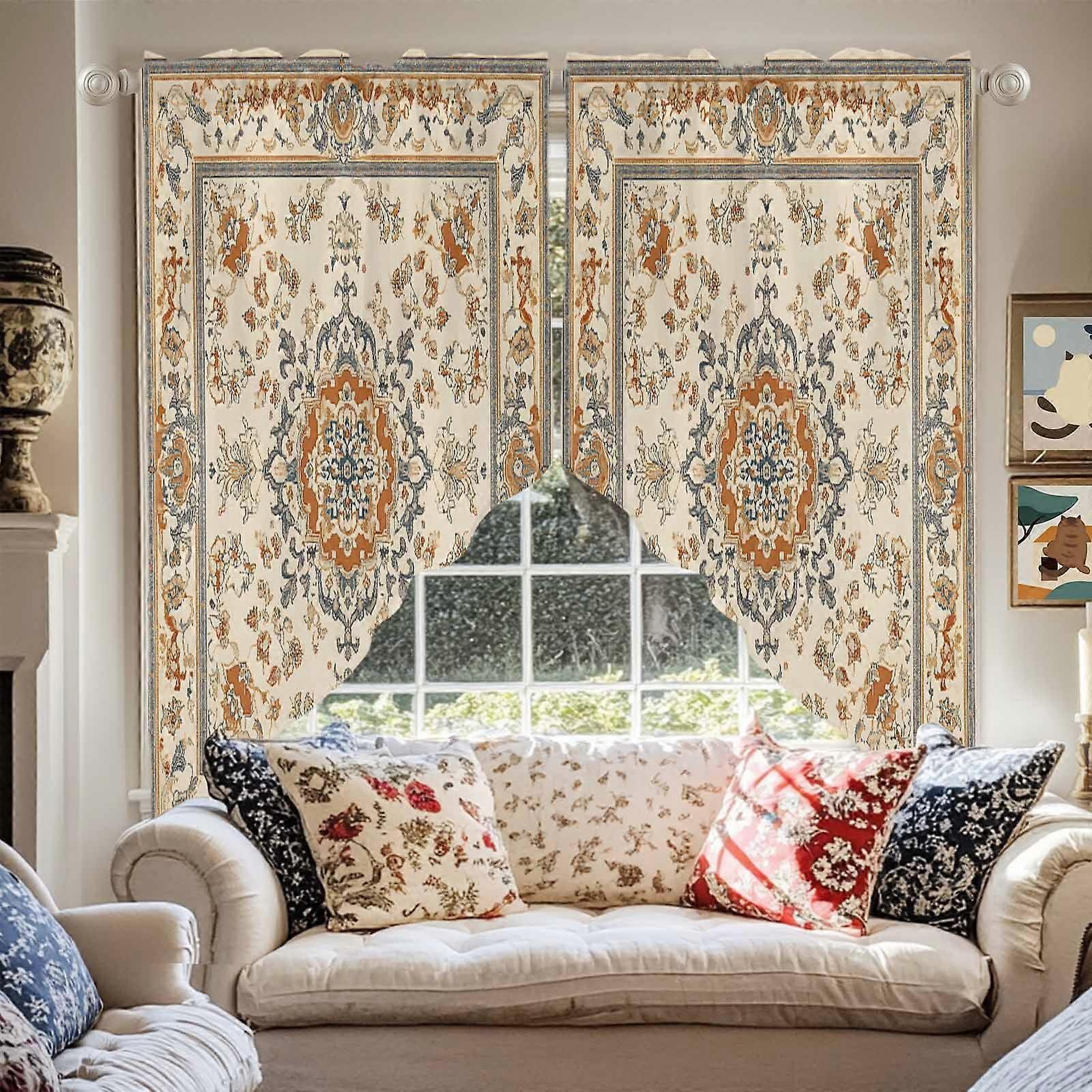 Bohemian Swag Curtain Valance, Ethnic Vintage Floral Pattern, Distressed Window Treatment for Kitchen/Bathroom/Bedroom, 36"x45", compatible with