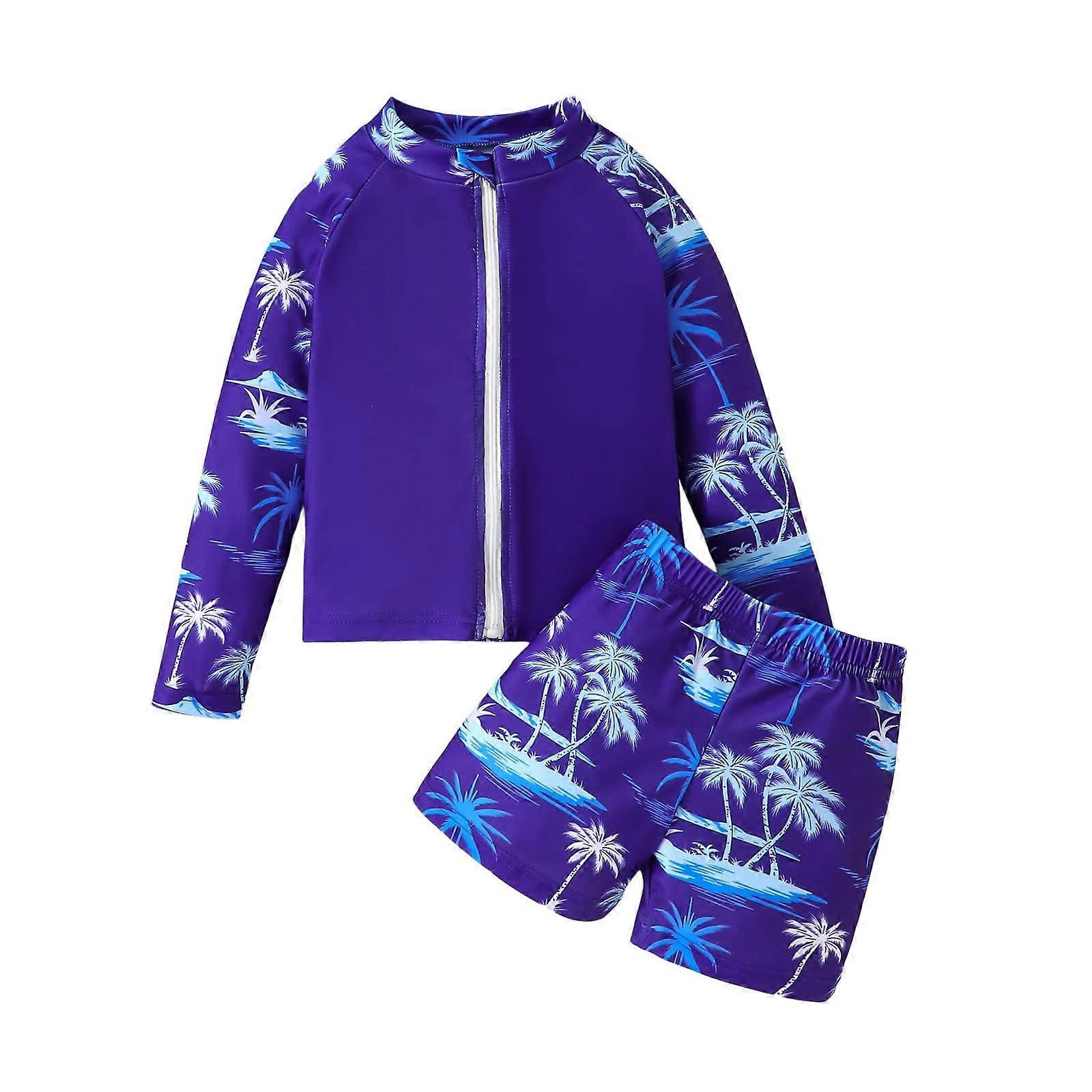 AWZXDE Boys Two Pcs Swimwear Set Long Sleeve Zip Up Dinosaur Football Print Rash Guard And Swim Trunks For Kids (1-8 Years) Light Blue,3-4 Years