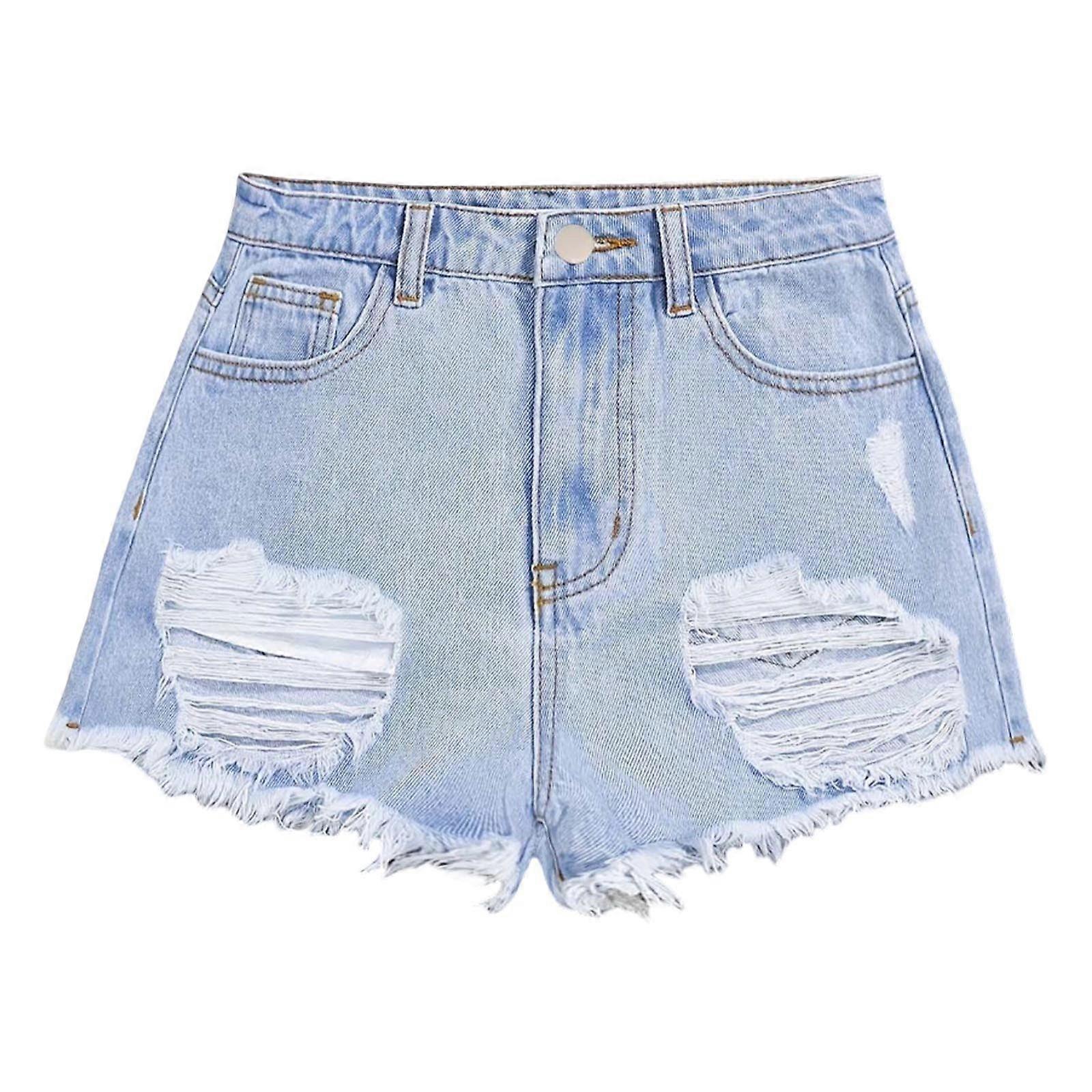 AWZXDE Big Girls Washed Denim Shorts For Girls Loose Fit Casual Summer Shorts With Ripped Details Fashion Light Blue,8-9 Years