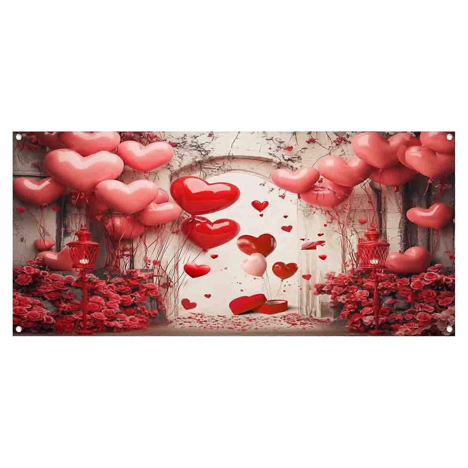 Valentine's Day Photo Backdrop: Rose & Heart Garage Door Cover, Brick Wall Design – Compatible with All Standard Doors