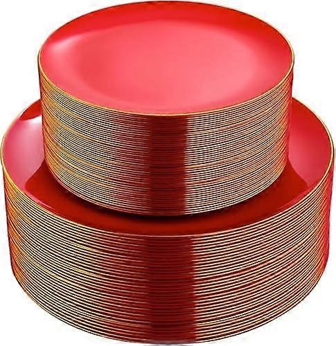 100PCS Red Plastic Plates Disposable Heavy Duty - Include 50 Dinner / 50 Dessert Plates for Party & Christmas