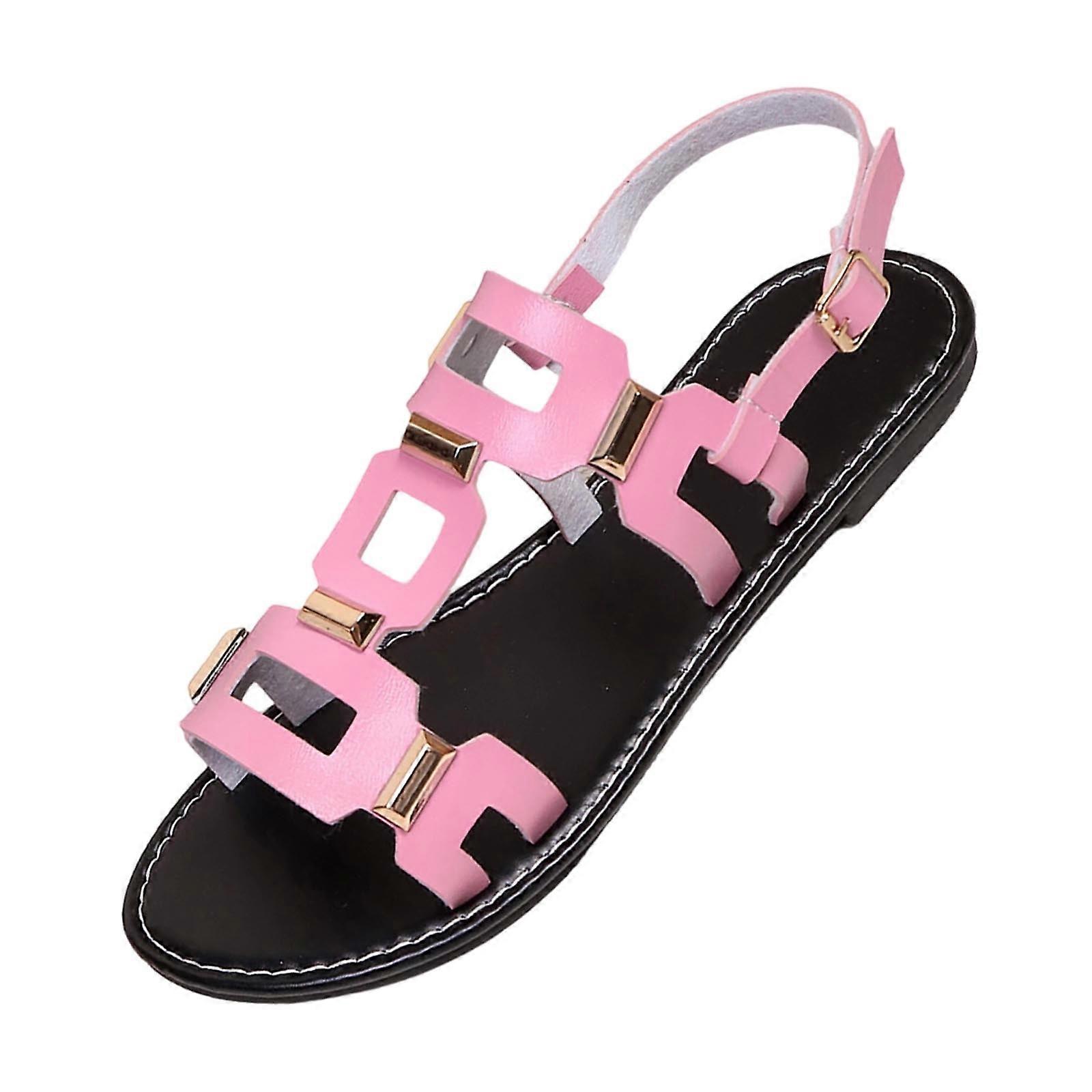 Pink Open-Toe Block Heel Sandals for Women, Vintage Ankle Strap, Synthetic, EU39/UK5/US7, Compatible with Spring/Summer Outfits