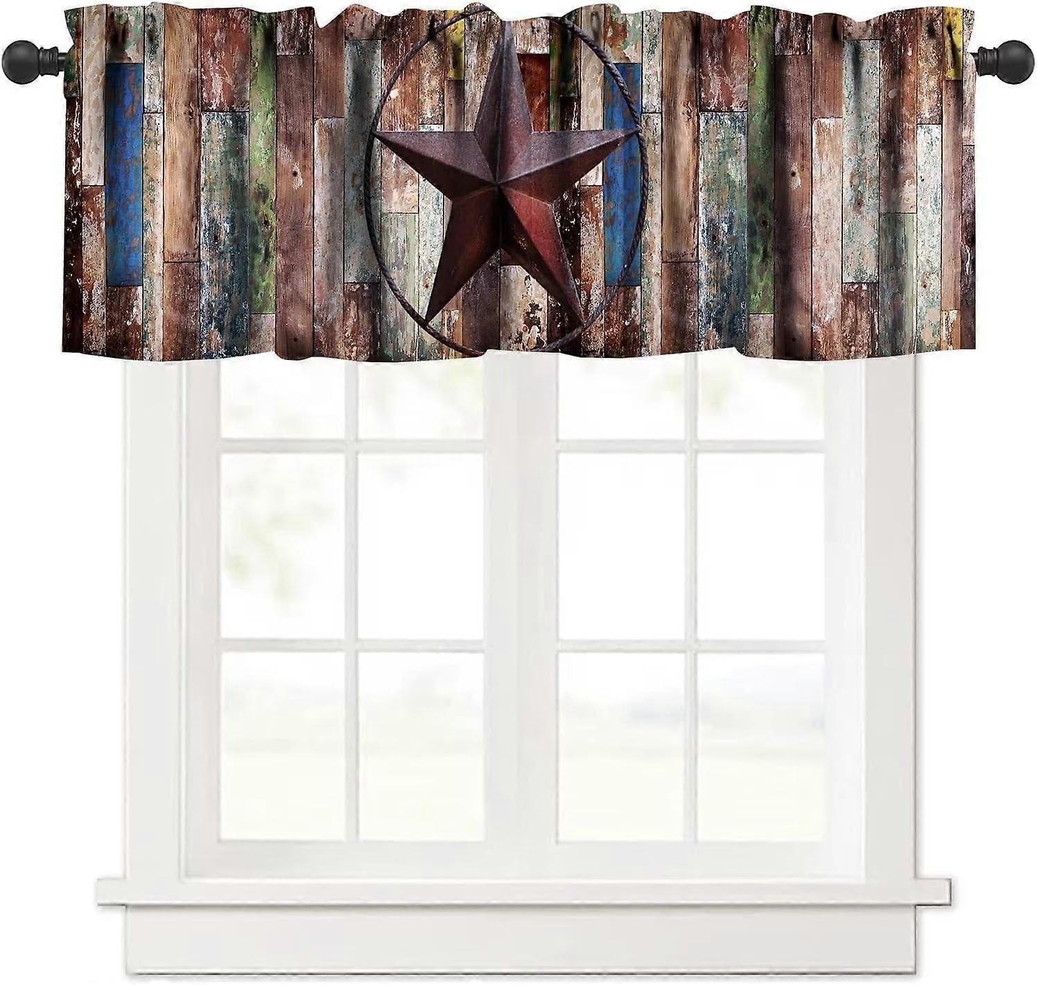 Rustic Texas Star Valance Curtains – Farmhouse Kitchen/Living Room Decor, Rod Pocket, 54x18 in, Compatible with Standard Rods