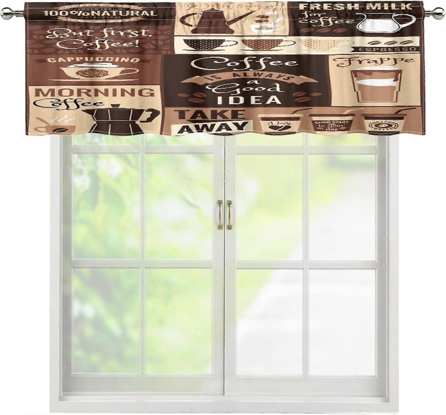 Coffee Valance Curtains, Brown Coffee Shop Logo Cartoon Pattern, Rod Pocket Drapes for Living Room/Bedroom/Kitchen, 54x18in, 1P
