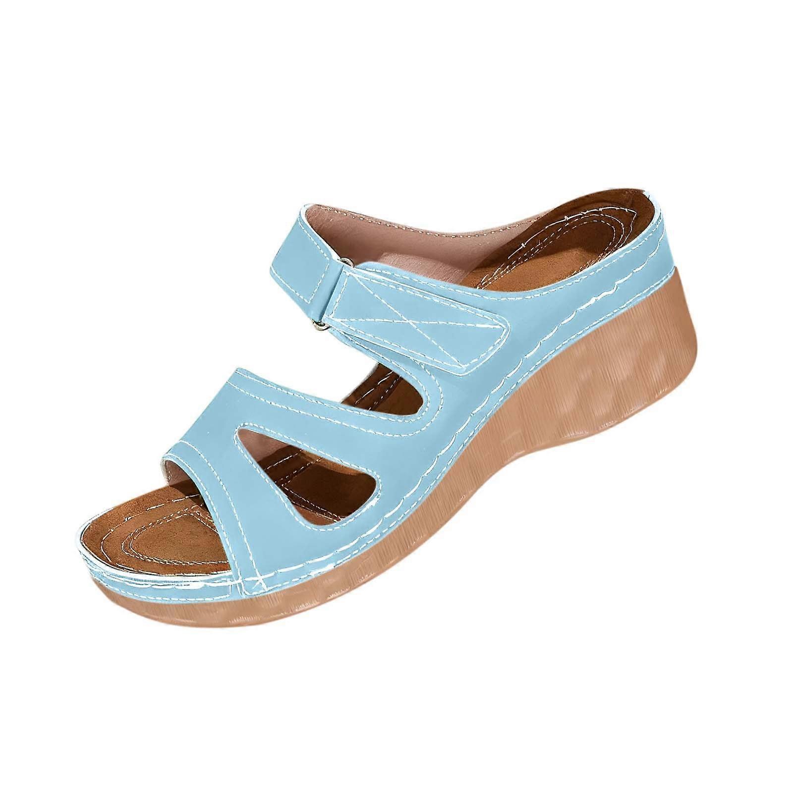 Light Blue Women's Wedge Sandals, Peep Toe Platform, Comfortable Lightweight Casual Shoes for Beach/Indoor/Outdoor – Summer Footwear