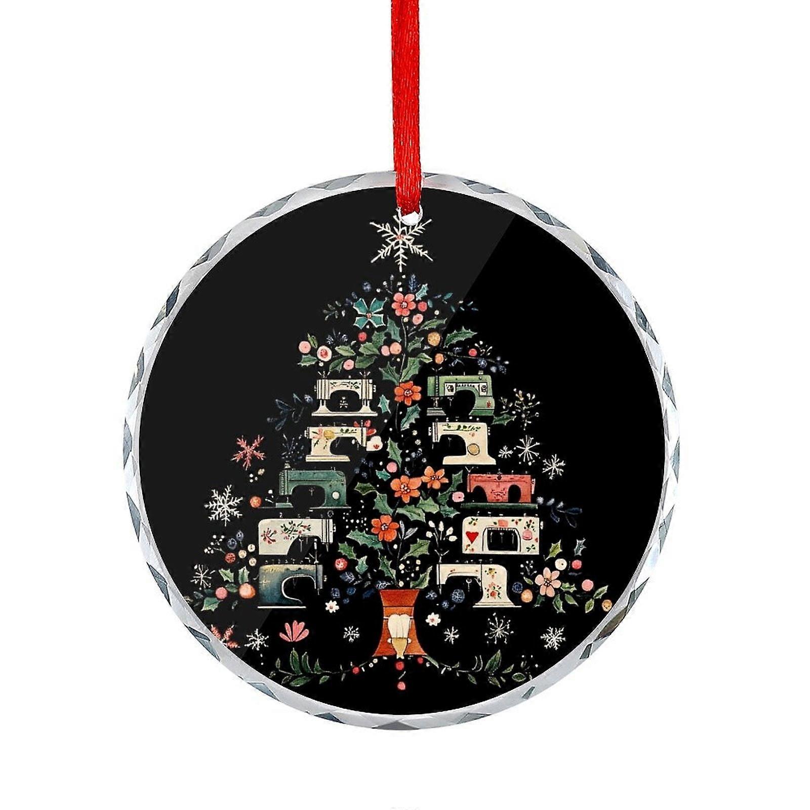 Funny Crystal Glass Christmas Ornament – Sewing Machine & Snowflake Design, Xmas Tree Decor, Appreciation Gift (Compatible with Standard Tree Hooks)